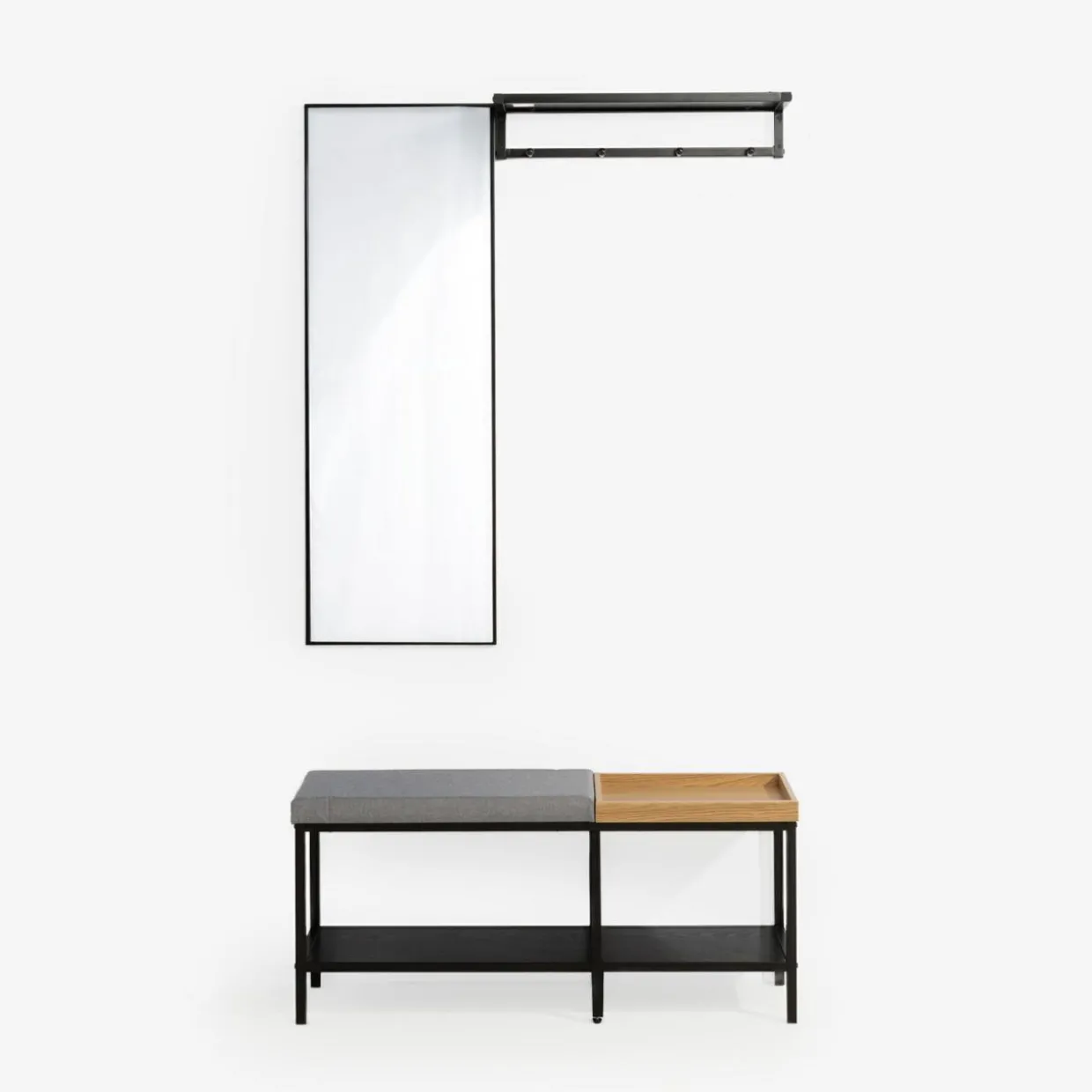 - Ławka zapewnia miękkie siedzisko do założenia butów, na dolnych półkach zmieści się kilka par butów, a na górnej półce – pasty i szczotki do obuwia.