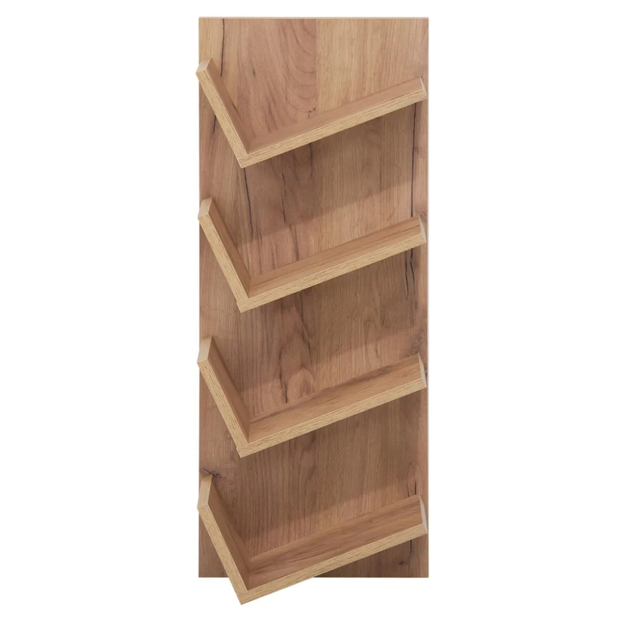 Na pionowym panelu znajdują się 4 asymetryczne półki, na których poukładasz książki pod skosem.