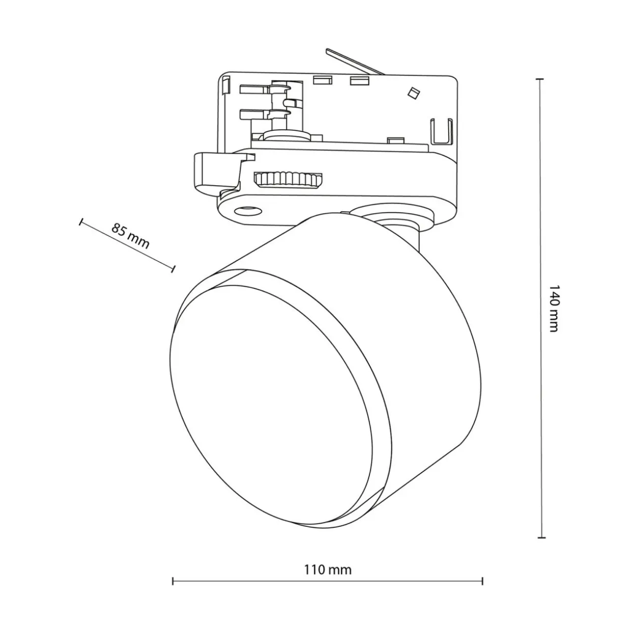 - Górna część oprawy i mocowanie do szyny są w czarnym, matowym kolorze.