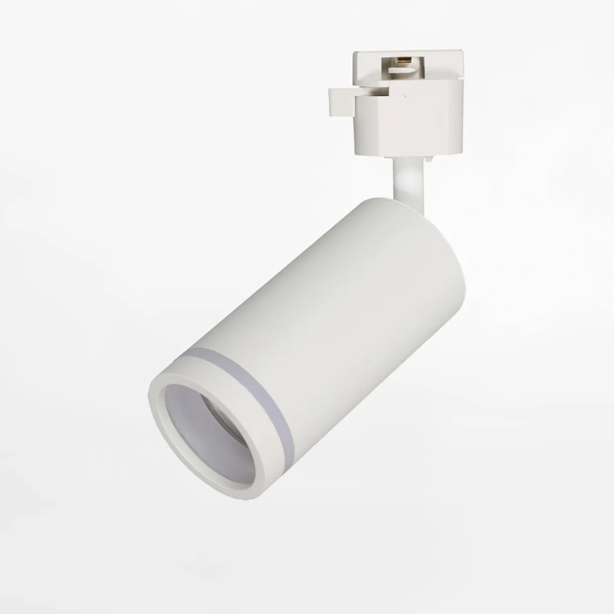 - Górna część oprawy i mocowanie do szyny są w białym, matowym kolorze. Głowica z pierścieniem zapewnia dekoracyjny efekt po zapaleniu światła.