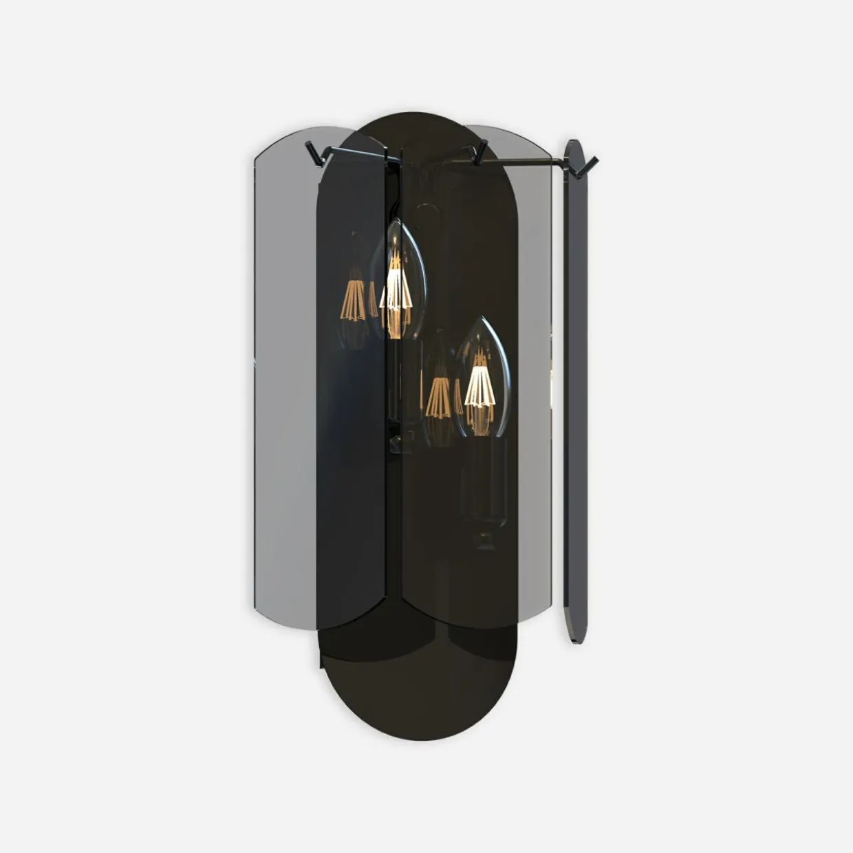 - Modny kształt lampy oparty jest ozdobach o regularnym kształcie, wykonanych z przydymionego szkła. Wykończenie lampy łączy czerń oprawy z transparentnym kloszem.