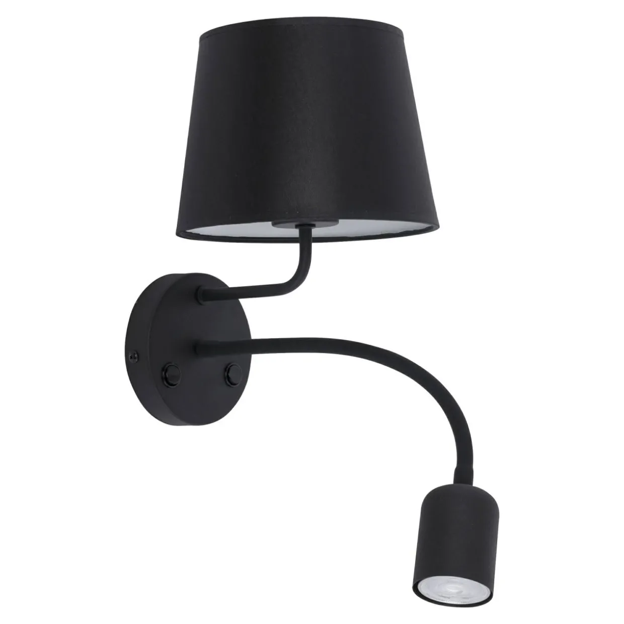 Czarna obudowa podstawy, ramion i klosza sprawia, że kinkiet MAJA można łatwo dopasować do większości aranżacji. Świetnie też wygląda w połączeniu z jasnymi żywymi kolorami. Posiada oprawy przeznaczone dla standardowych żarówek typu E27 o maksymalnej mocy 60W oraz żarówek LED typu GU10 o mocy 10W.