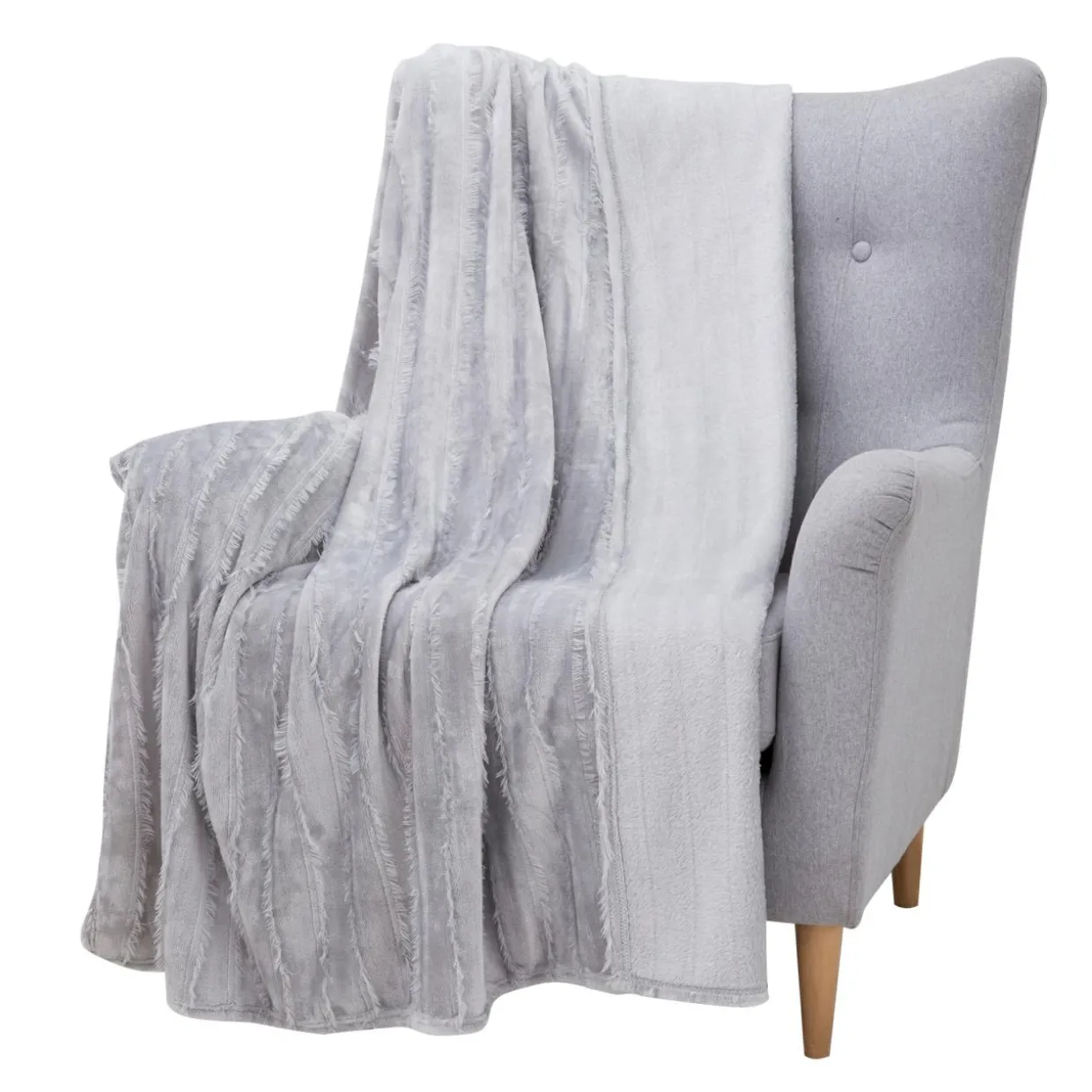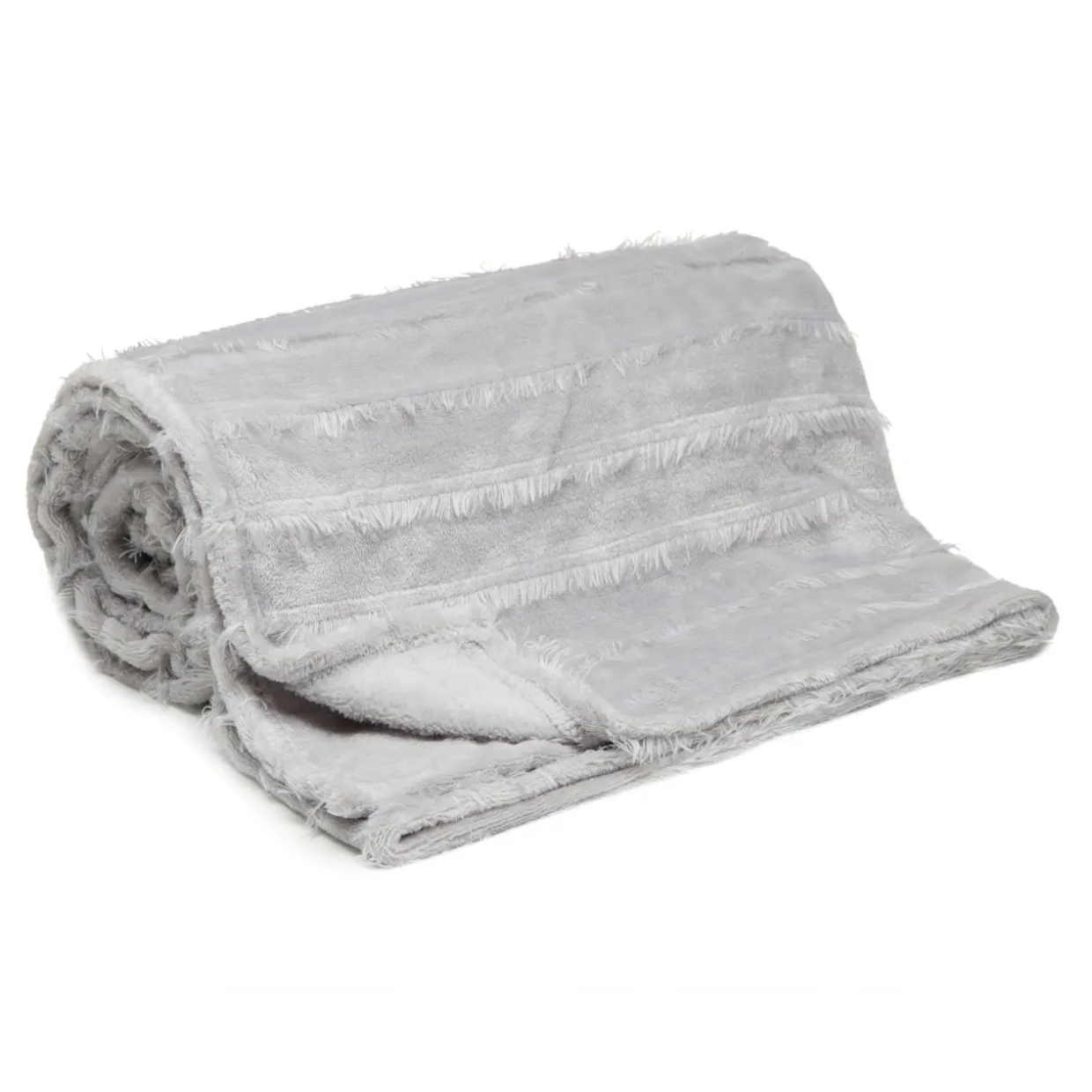 - Jasnoszary koc zdobiony fikuśnymi frędzelkami będzie ciekawym urozmaiceniem aranżacji wnętrza;