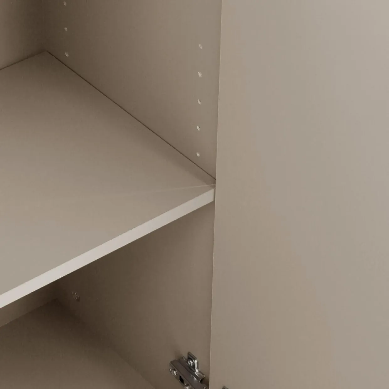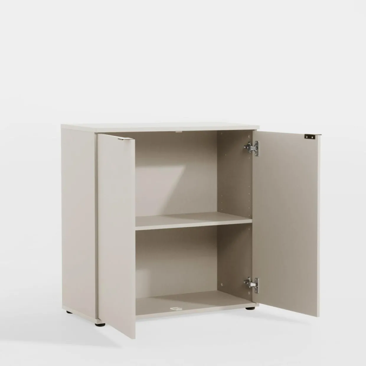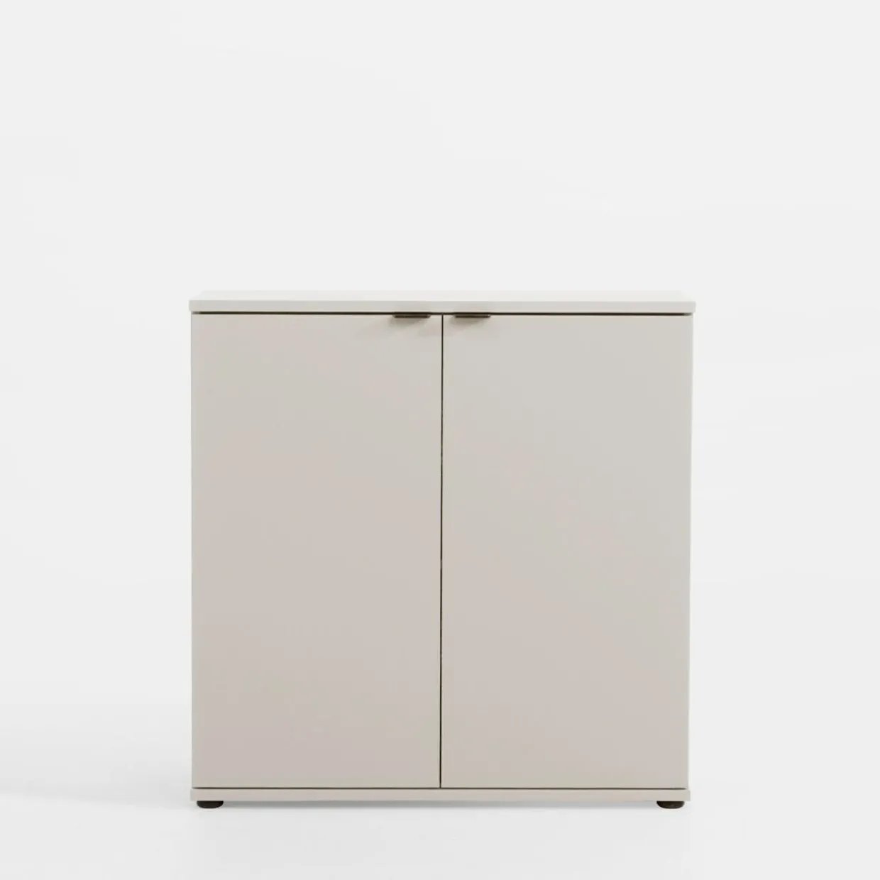 Prosta komoda GANYMEDE w odcieniu jasnego beżu to rozwiązanie do wnętrz w naturalnych tonacjach. Dwudrzwiowy układ zapewnia wygodne przechowywanie, a subtelny kolor dodaje lekkości aranżacji.