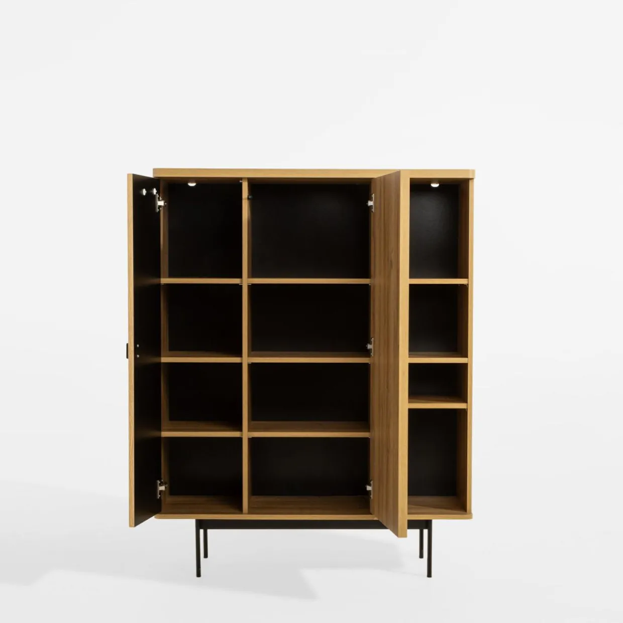 - Za drzwiami znajduje się aż 8 wnęk o różnych wysokościach, które pozwolą Ci posegregować dokumenty czy ubrania.