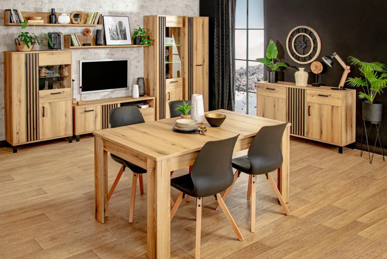 Szukasz nowoczesnego i praktycznego mebla do Twojego salonu? Komoda NOEL wyposażona w 2 wnęki ukryte za podwójnymi drzwiami i szufladę pozwala sprawnie uporządkować rzeczy.