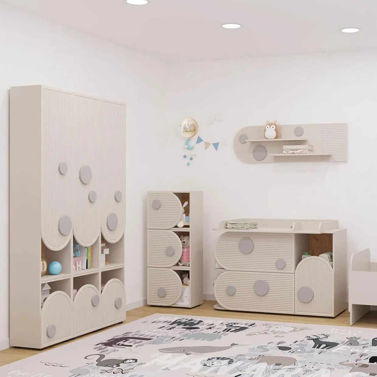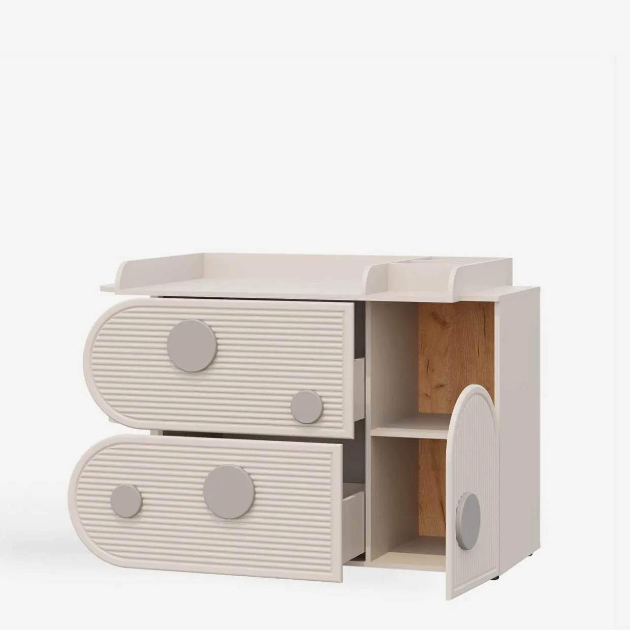 Komoda PING świetnie sprawdzi się przy maluszku. Wszystkie akcesoria, pieluszki i dodatkowe ubranka będą w jednym miejscu. Gdy dziecko podrośnie, w środku przechowasz bieliznę i koszulki.