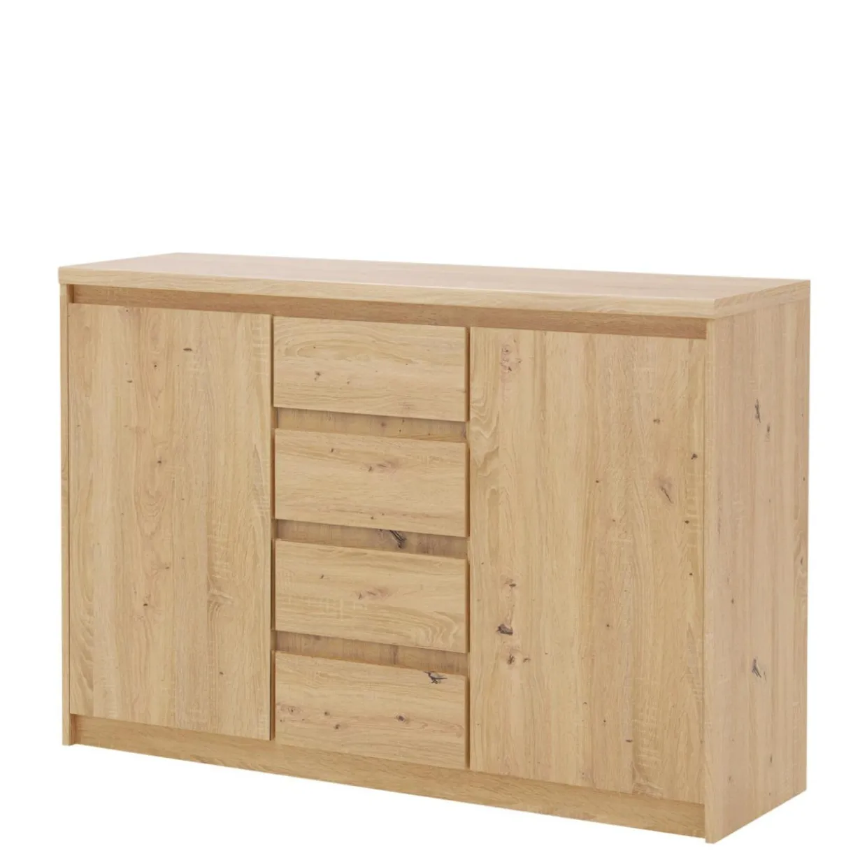 - Komoda wykonana jest z laminowanej płyty meblowej o grubości 18 cm w kolorze dąb artisan.