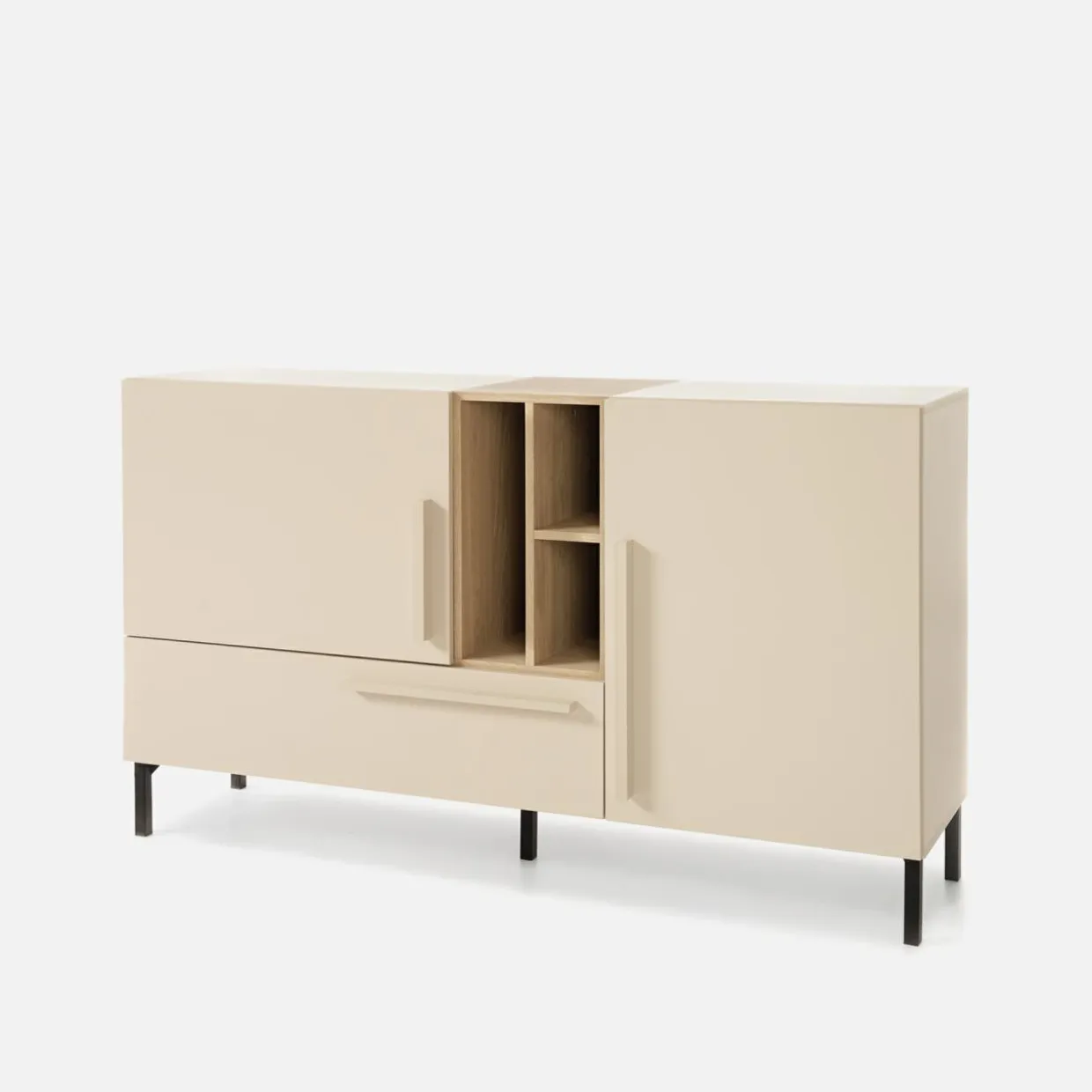 - W kolekcji znajdują się meble w 3 wybarwieniach. Jasny beż piaskowy przełamuje kolor dębu olejowanego i granatu królewskiego. Wyraźne elementy uwydatniają delikatny odcień, podkreślając ciepło i elegancję.