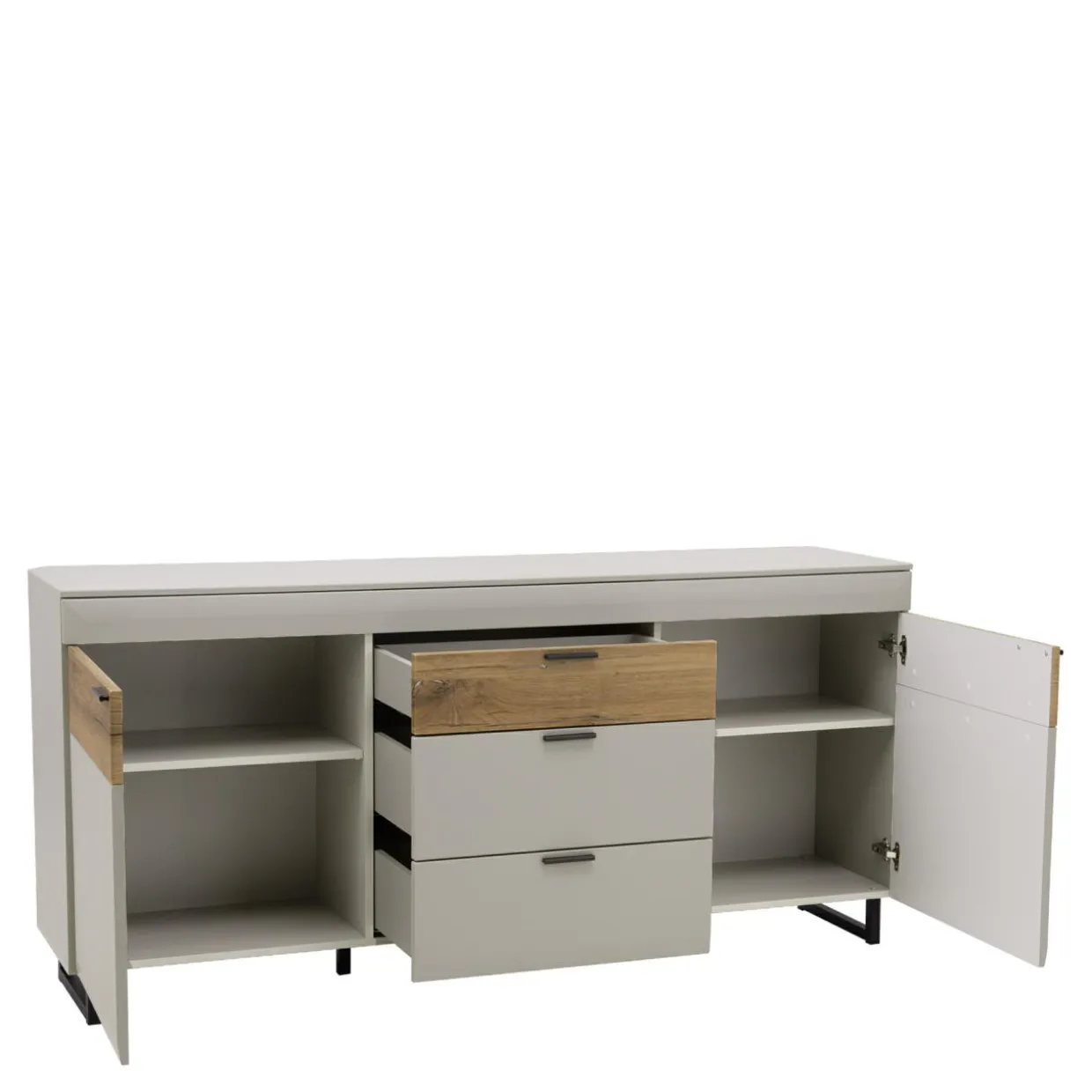 Wyposażona w 3 pojemne szuflady oraz 4 półki ukryte za podwójnymi drzwiami będzie doskonałym wyborem do Twojego wnętrza.