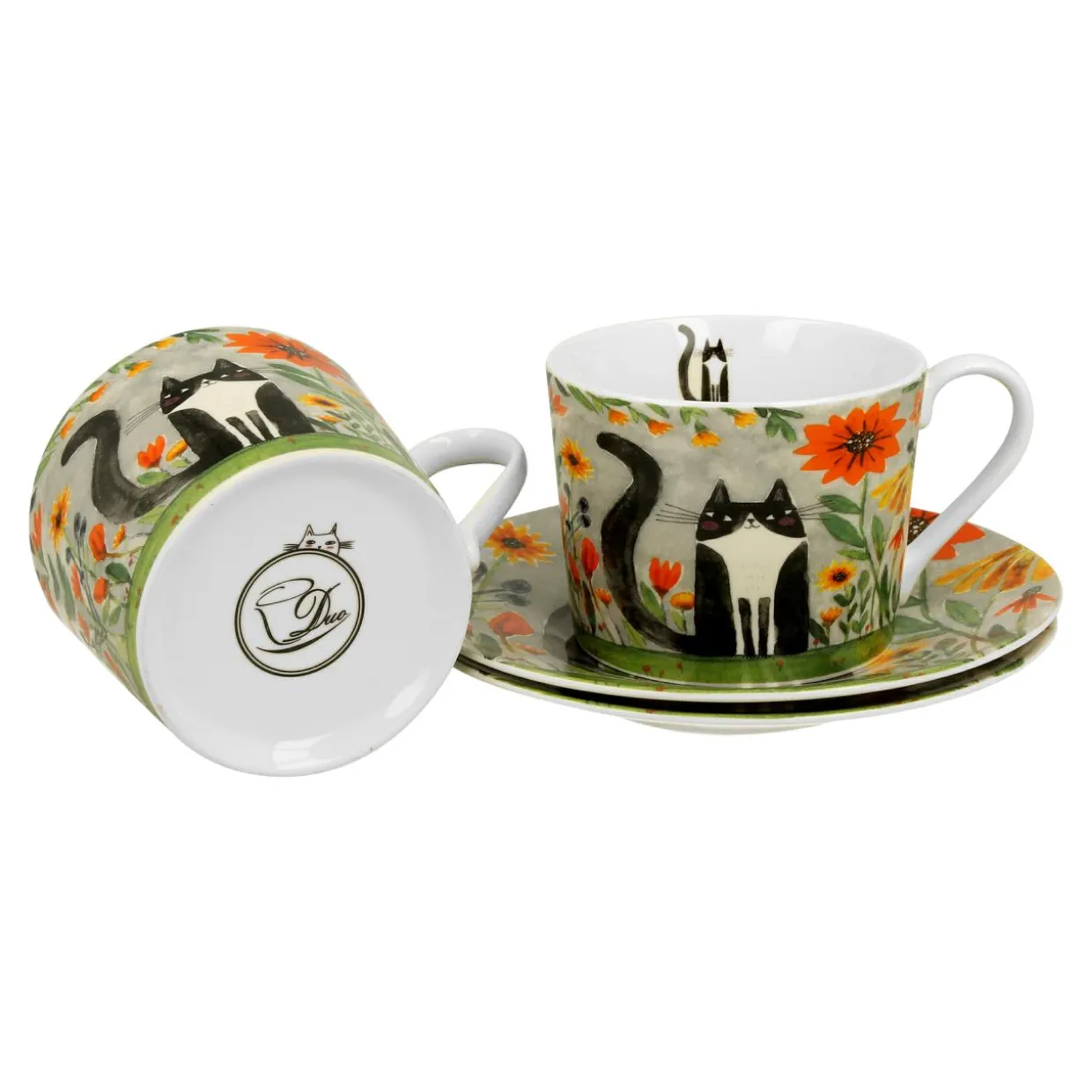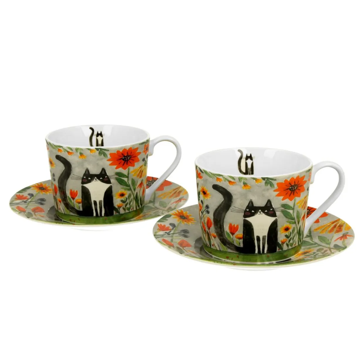 Komplet 2 filiżanek ze spodkami KOCI ŚWIAT ŁĄKA 230 ml