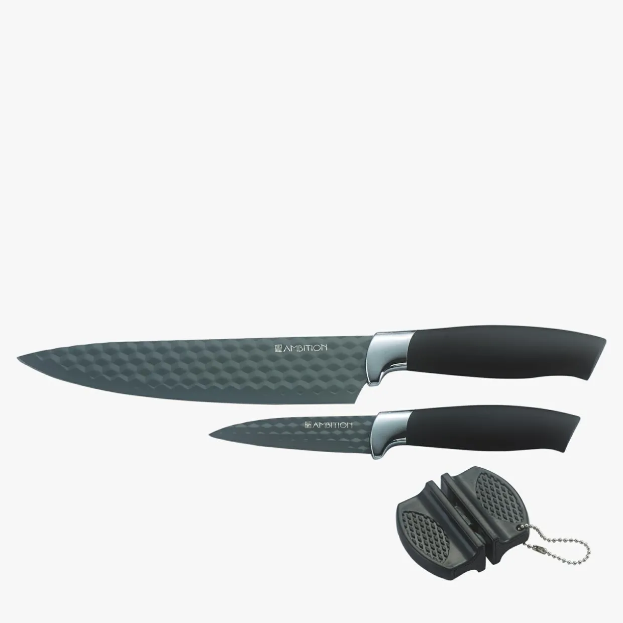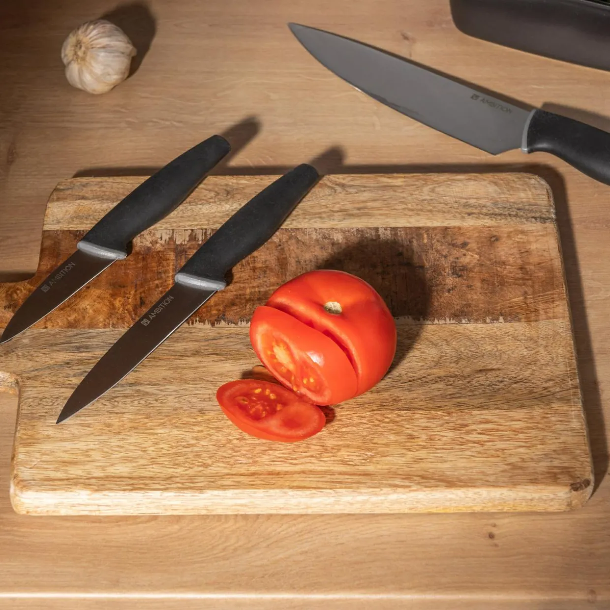 - Gumowa rękojeść sprawi, że noże będą dobrze trzymać się w dłoni podczas krojenia.