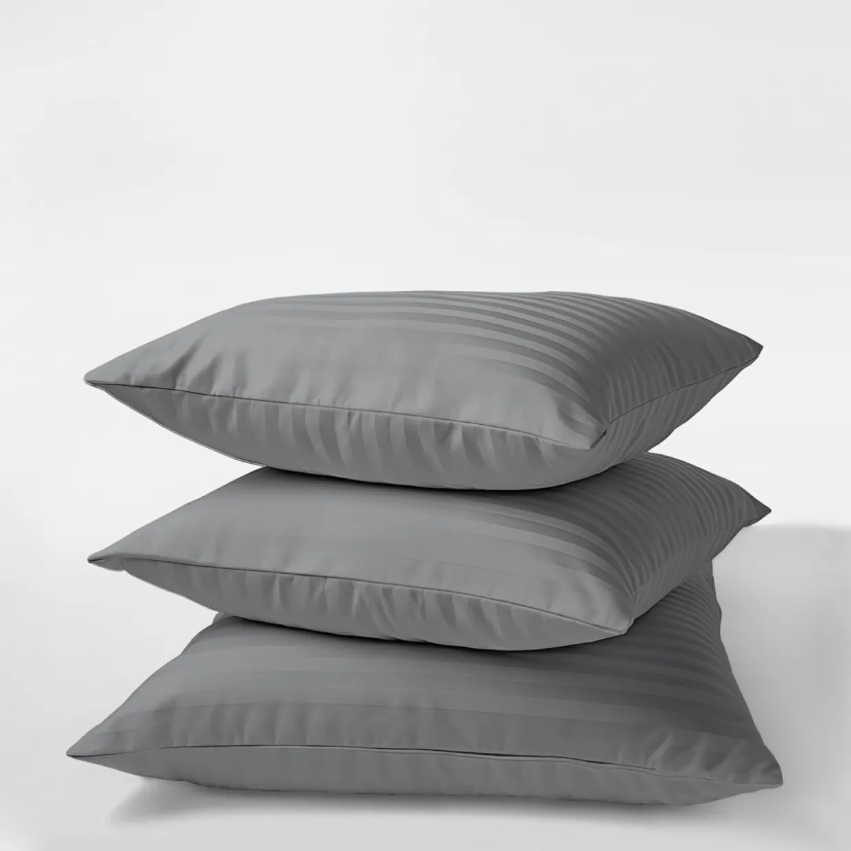 Komplet 2 ciemnoszarych poszewek jest uszyty z adamaszku – nadają się dla delikatnej skóry.