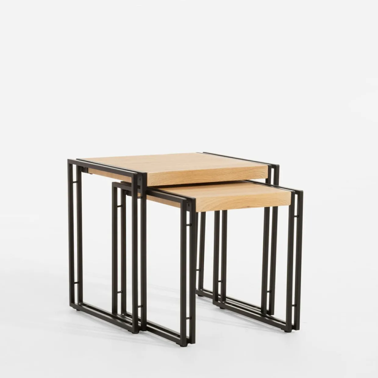 Stoliki możesz sprytnie schować jeden pod drugi, oszczędzając metraż, dlatego komplet sprawdzi się w niewielkich pokojach dziennych i kawalerkach.