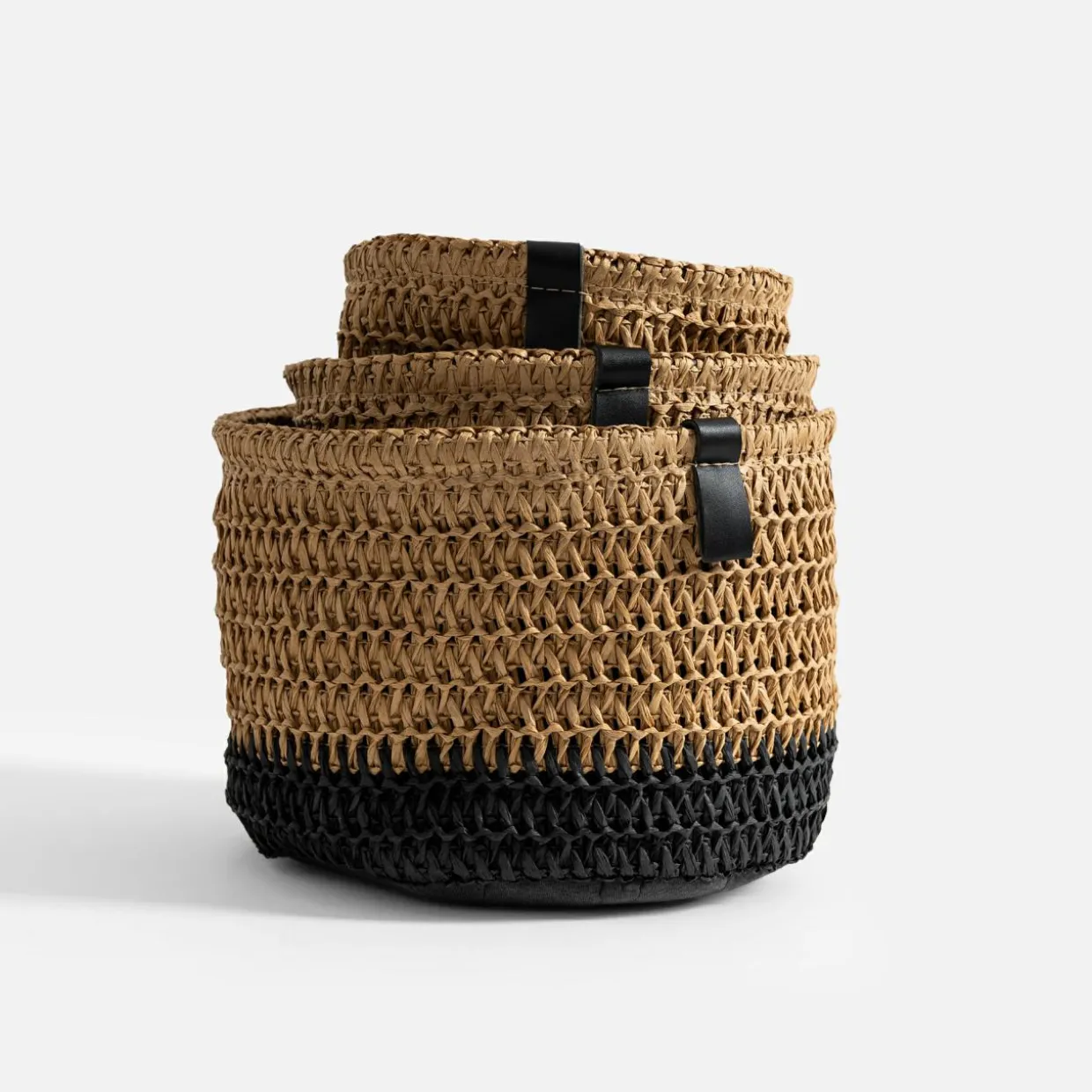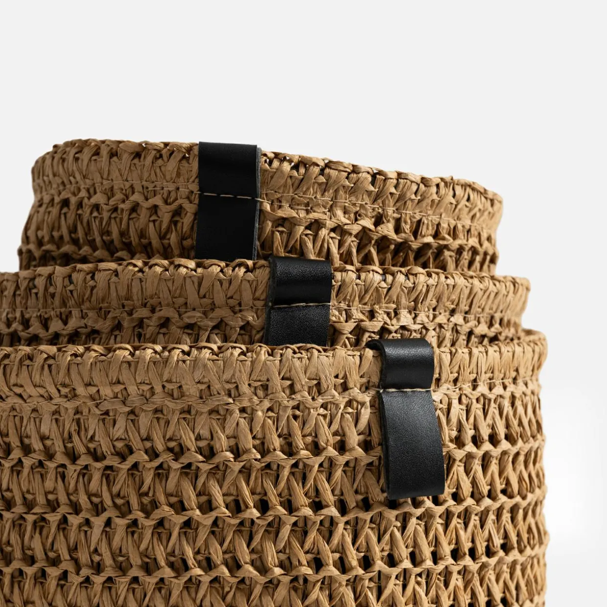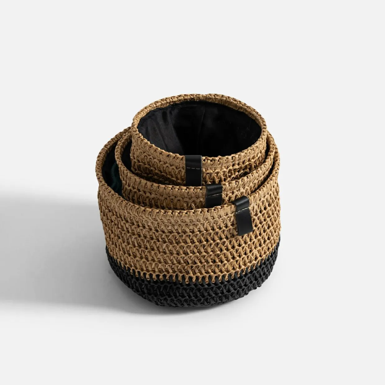 Komplet 3 koszy do przechowywania okrągłe brązowo-czarny