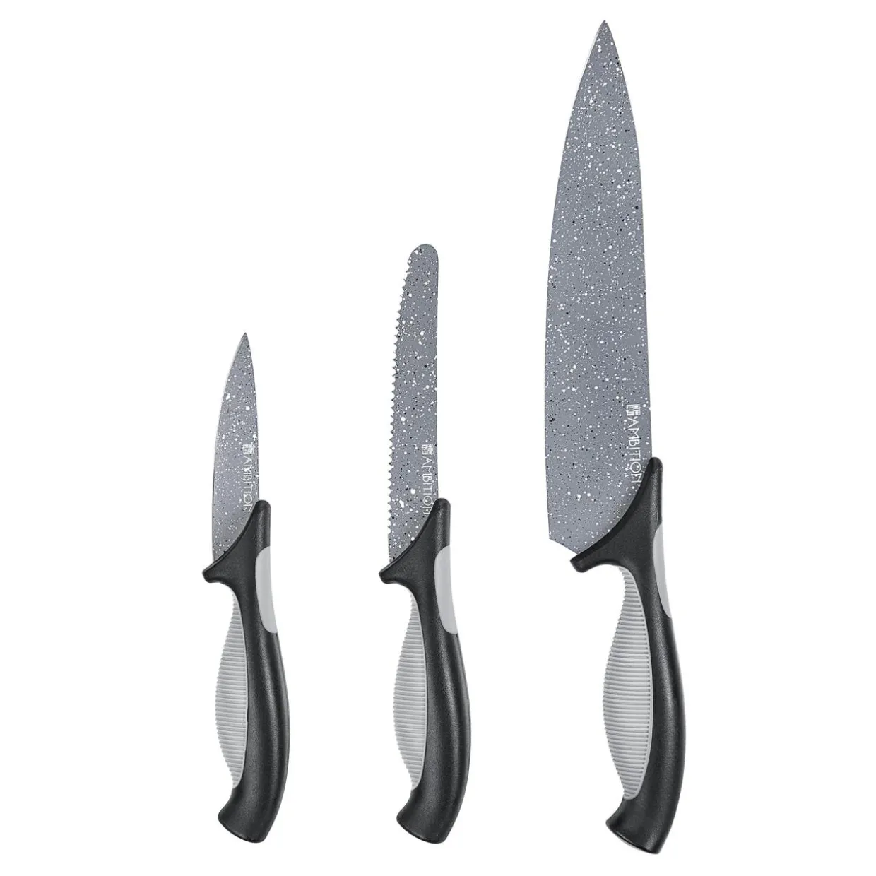 Nasz komplet 3 noży kuchennych Antracyt to nie tylko zestaw narzędzi, to prawdziwa inwestycja w Twoją pasję kulinarną. Każdy nóż z tej stylowej kolekcji jest wykonany ze stali nierdzewnej, co przekłada się na jego trwałość i odporność na uszkodzenia mechaniczne.