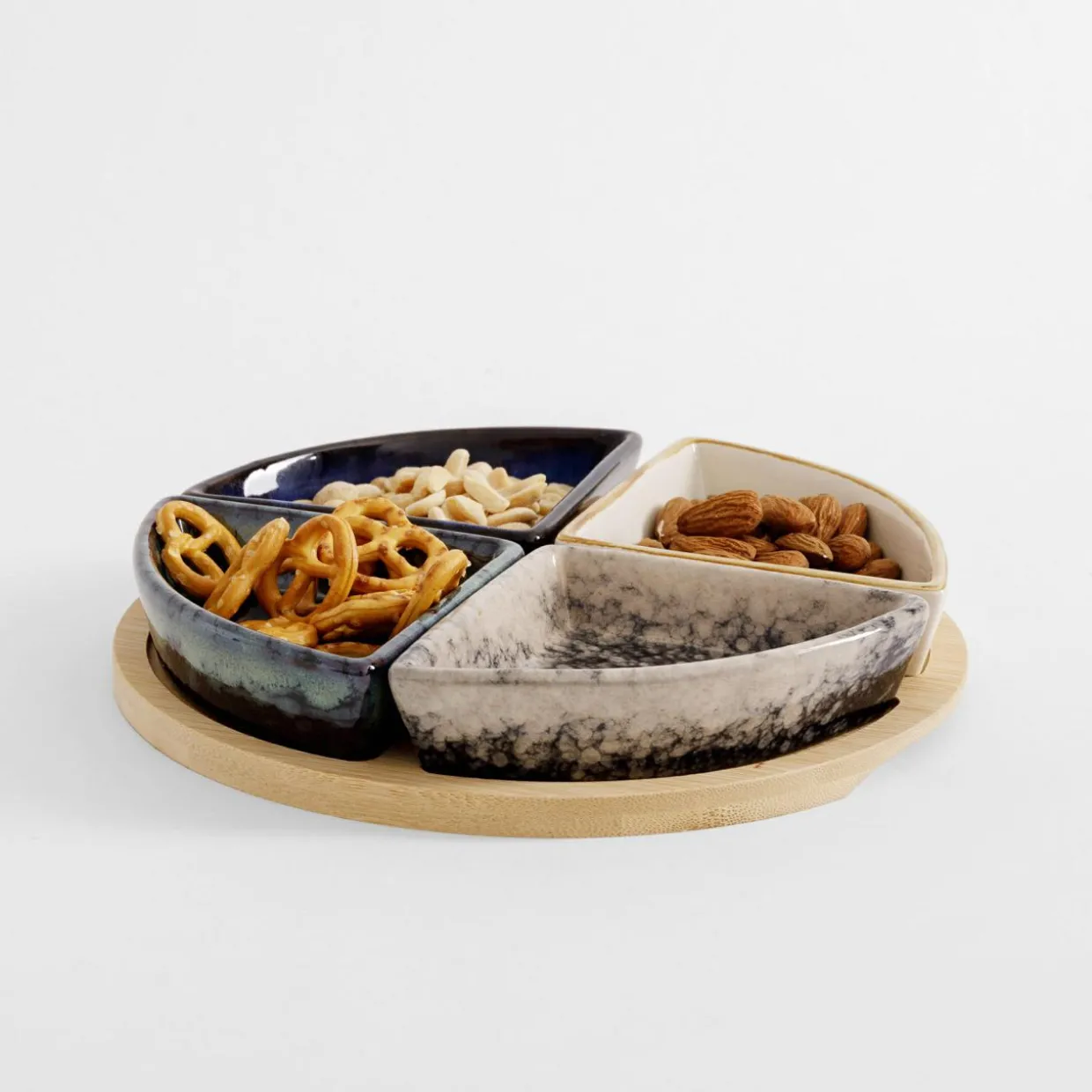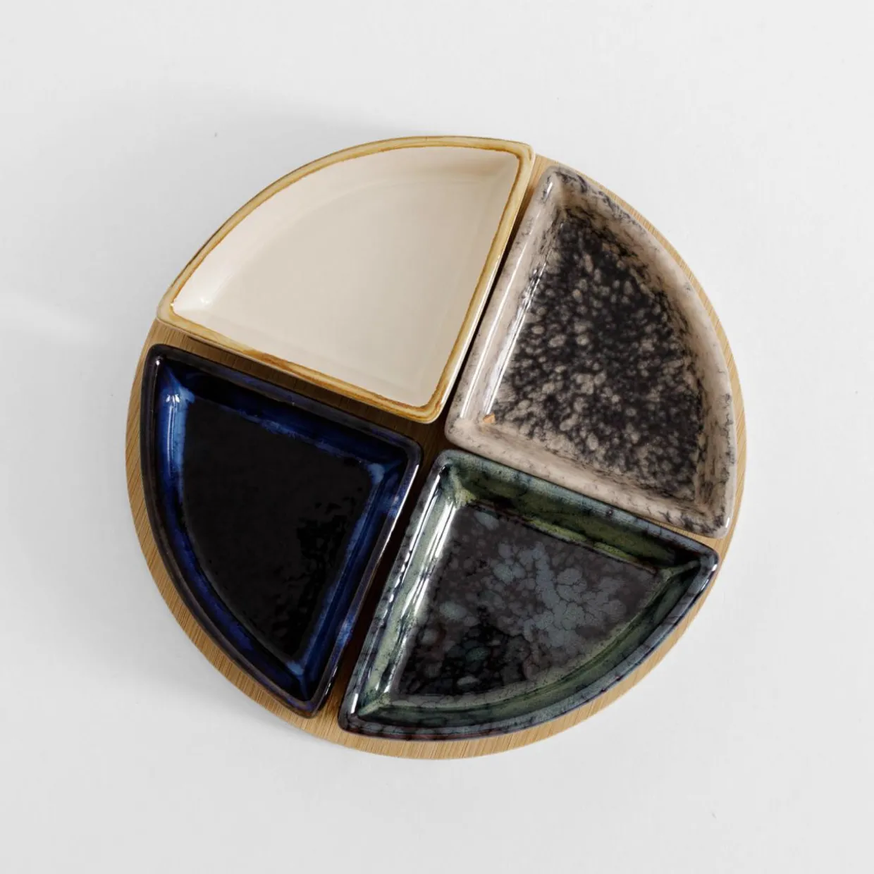 Komplet 4 miseczek na okrągłej bambusowej podstawie 21,5 cm
