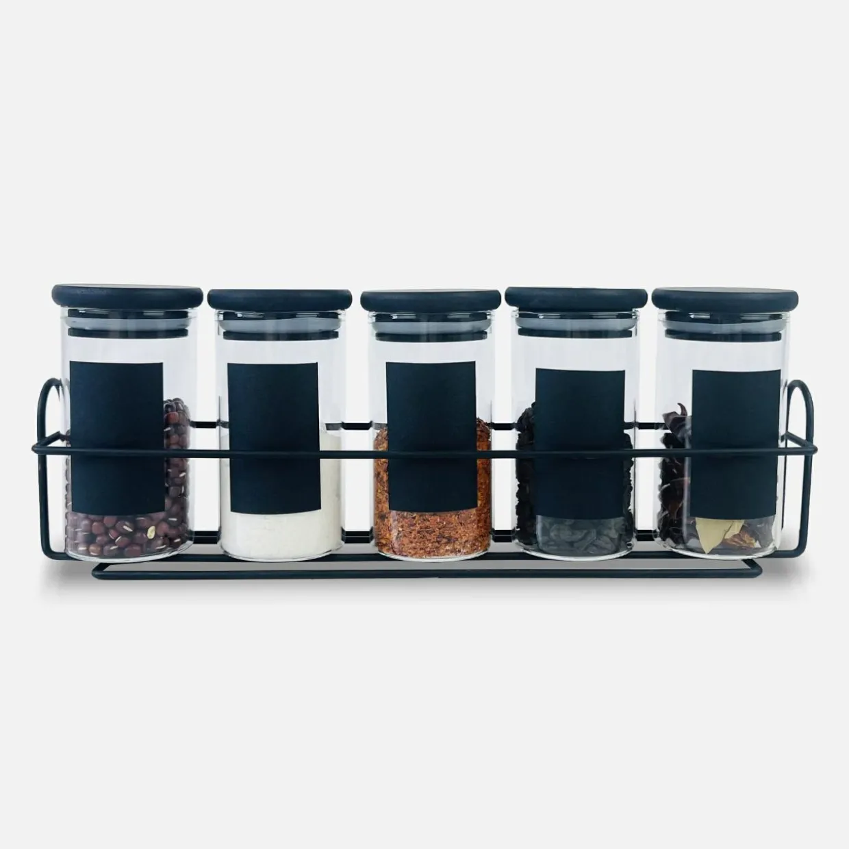 Komplet 5 pojemników do przypraw na stojaku 160 ml