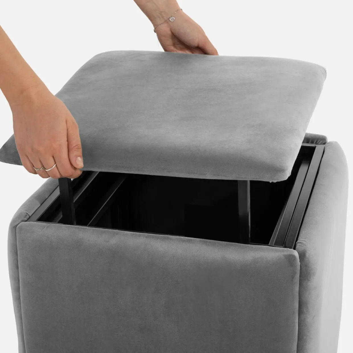 - Złożone pufy mają wymiary zaledwie 48x48x49 cm, natomiast pojedynczy puf: 41x41x43 cm.
