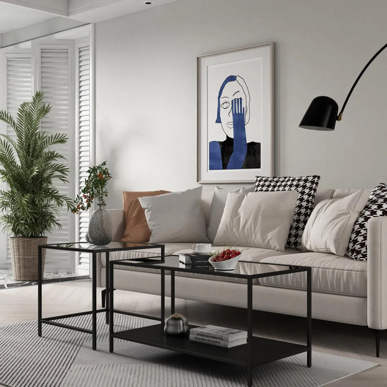 - Stoliki posiadają wysokie metalowe nóżki, dzięki czemu zadbasz o czystość pod meblem z pomocą odkurzacza automatycznego lub ręcznego.