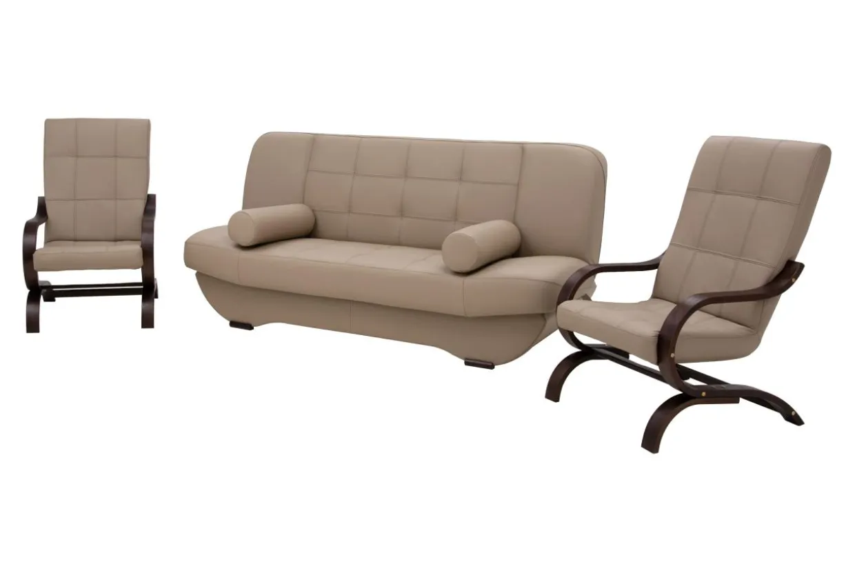 Komplet wypoczynkowy w beżowej skórze