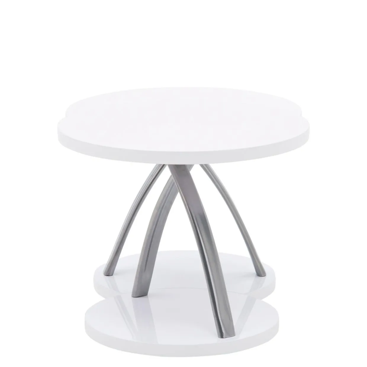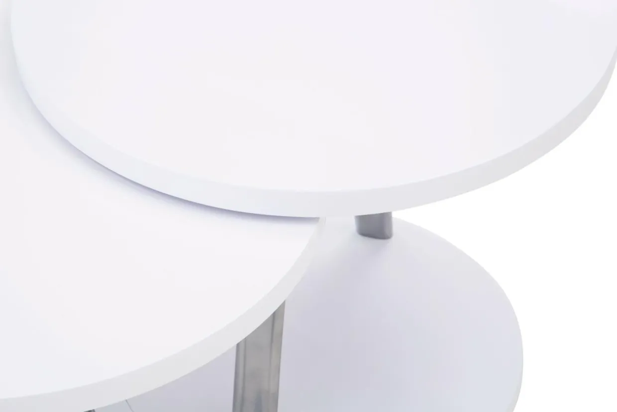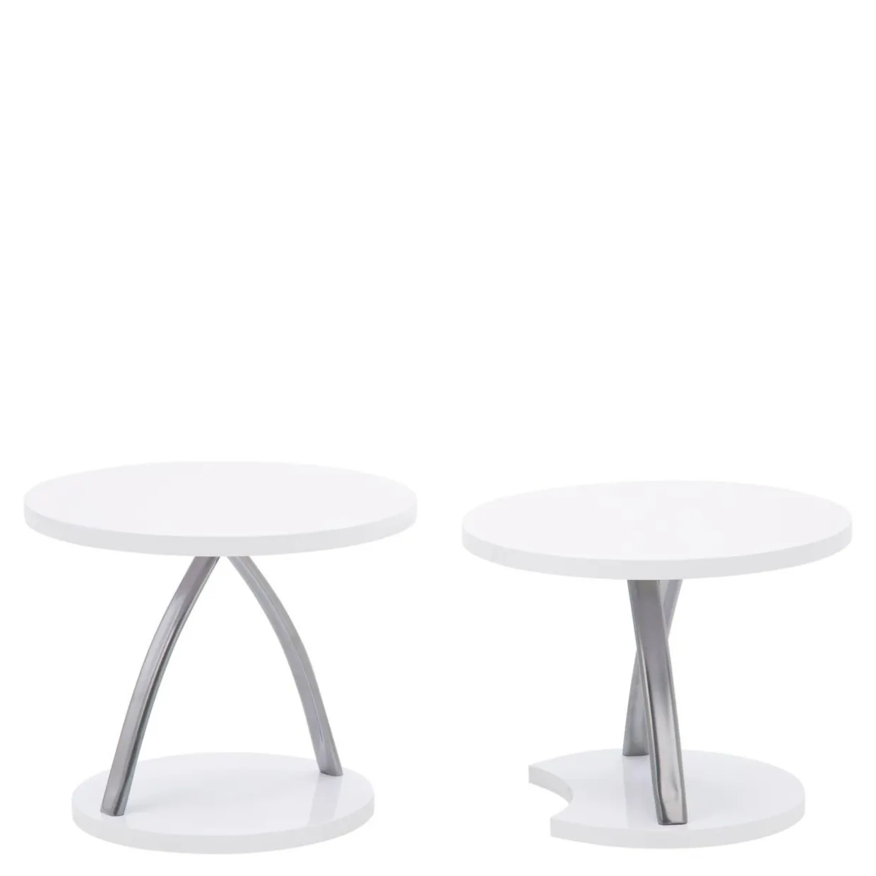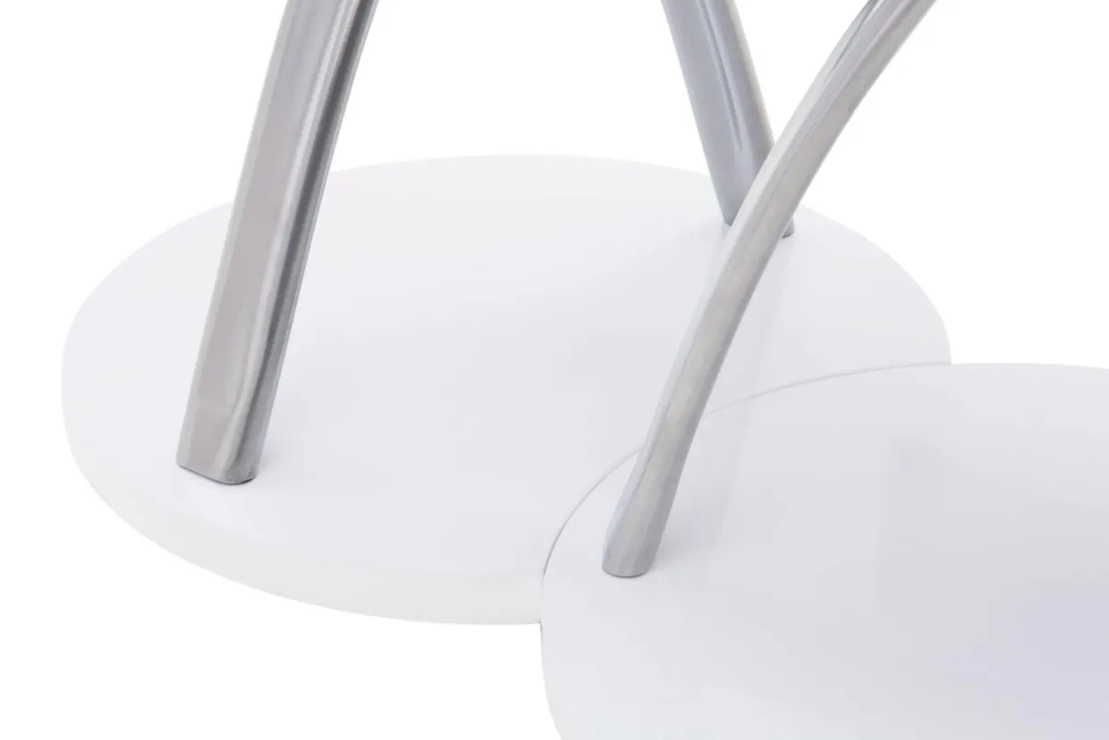 Białe stoliki ze srebrnymi nogami pasują do nowoczesnych aranżacji.