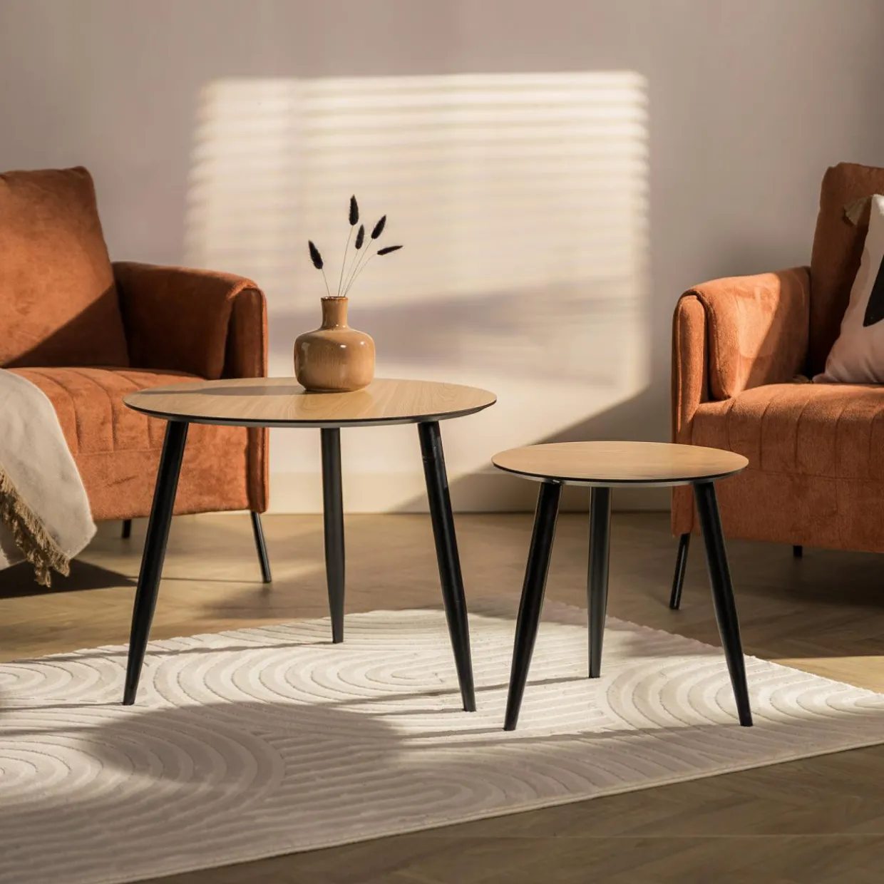 Mniejszy stolik można ukryć pod większym.