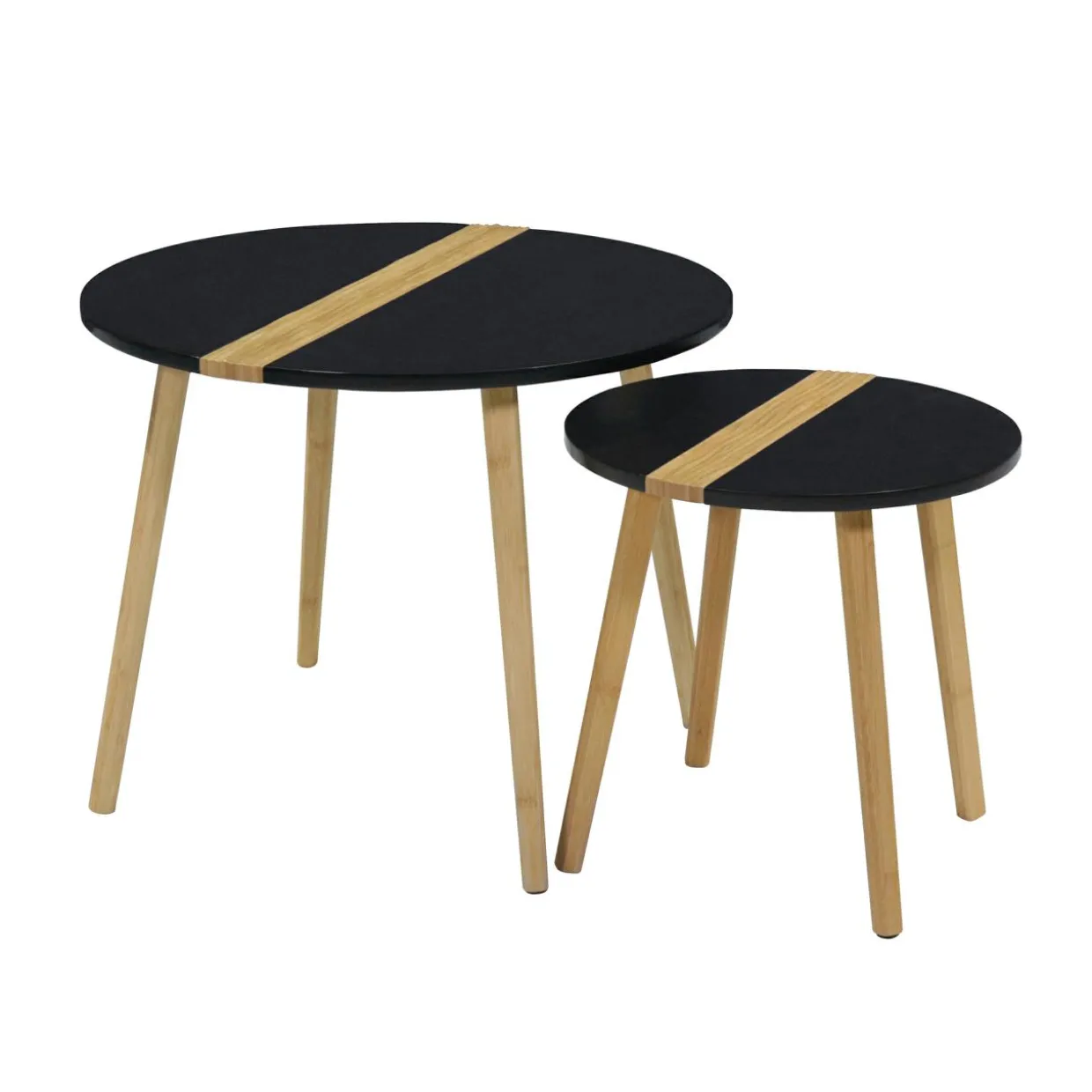 Stwórz przytulną atmosferę w pokoju dziennym z kompletem stolików FORNETTA. Nogi i dekor na blacie zostały wykonane z prawdziwego drewna bambusowego – tworzą kontrast z czernią i wprowadzając naturalne elementy do wystroju.
