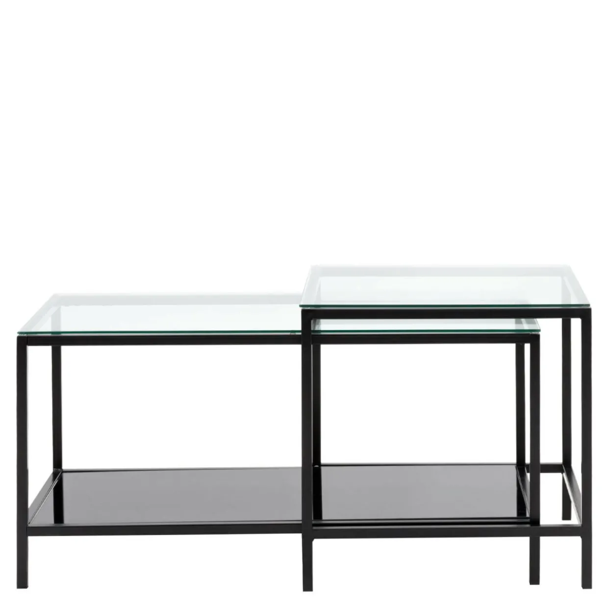 Stoliki wykonano z metalu, który został pomalowany metodą proszkową. Szklane blaty podkreślają industrialny charakter mebla