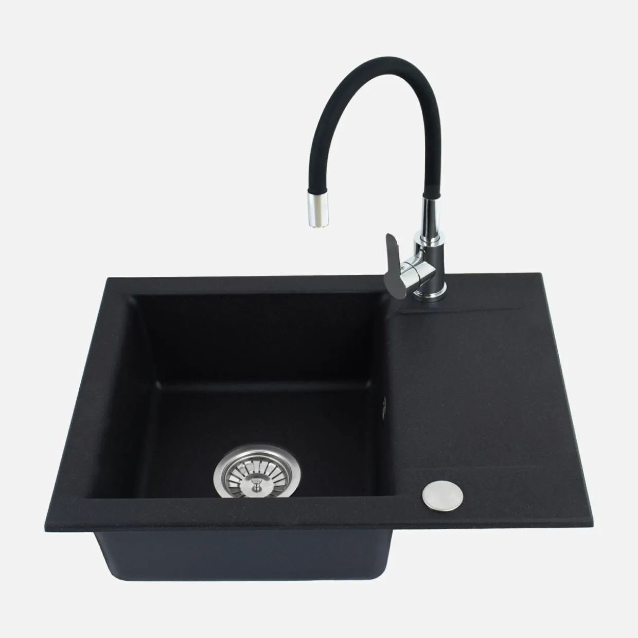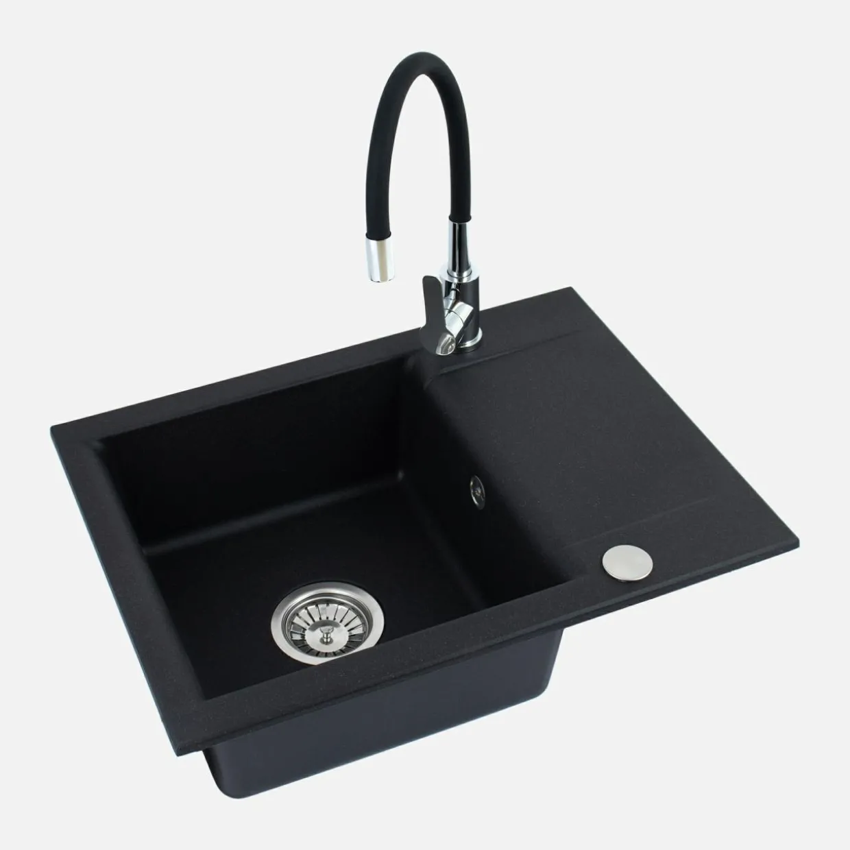- Wykończony w czarnym kolorze posiada 1 komorę i ociekacz.