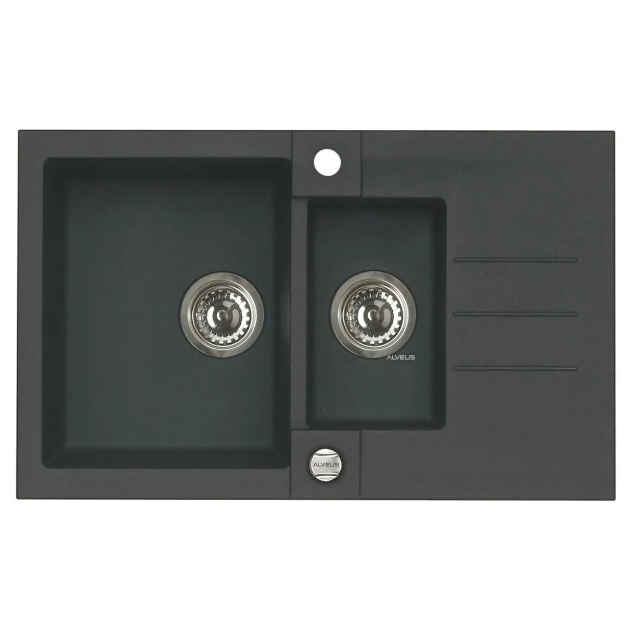 - Wykończony w czarnym kolorze ma 2 komory i ociekacz.