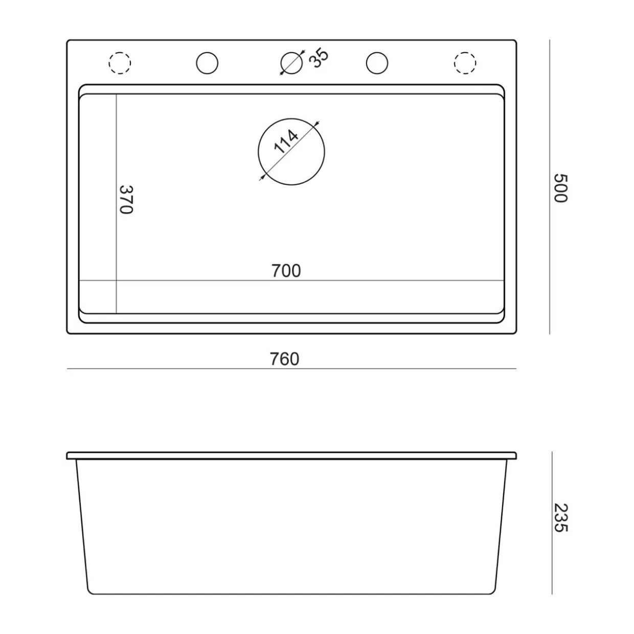 Materiał GraniteQ to połączenie drobnych cząsteczek granitu (75-80%) za pomocą wysokiej jakości spoiwa (20-25%), dzięki czemu zlewozmywak posiada wytrzymałość i odporność.