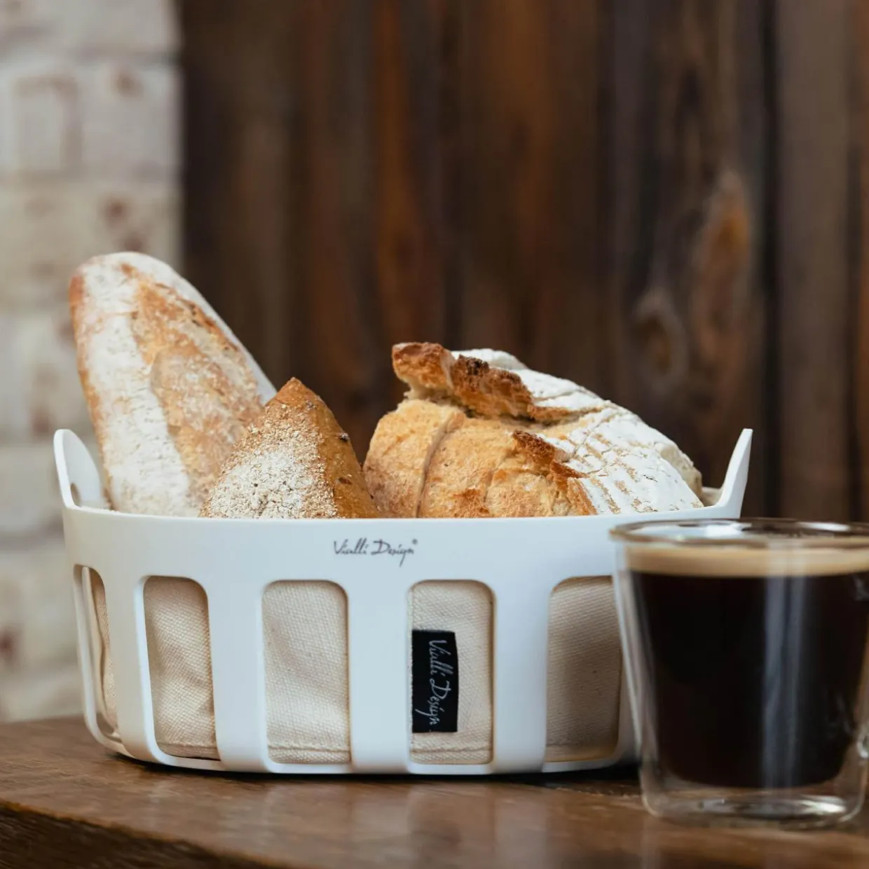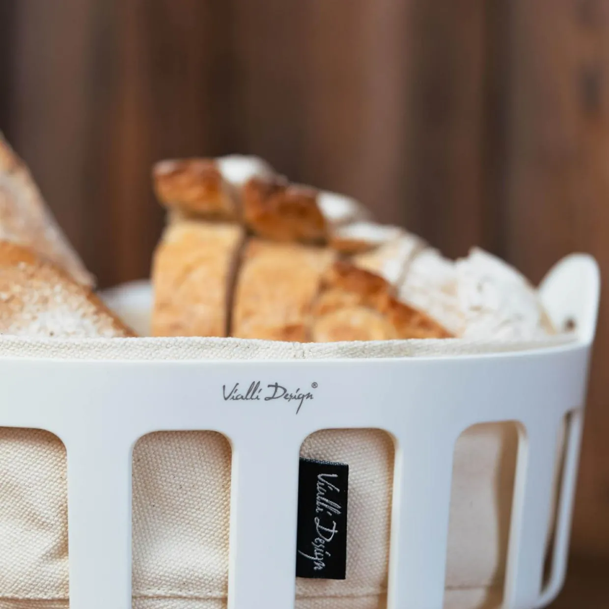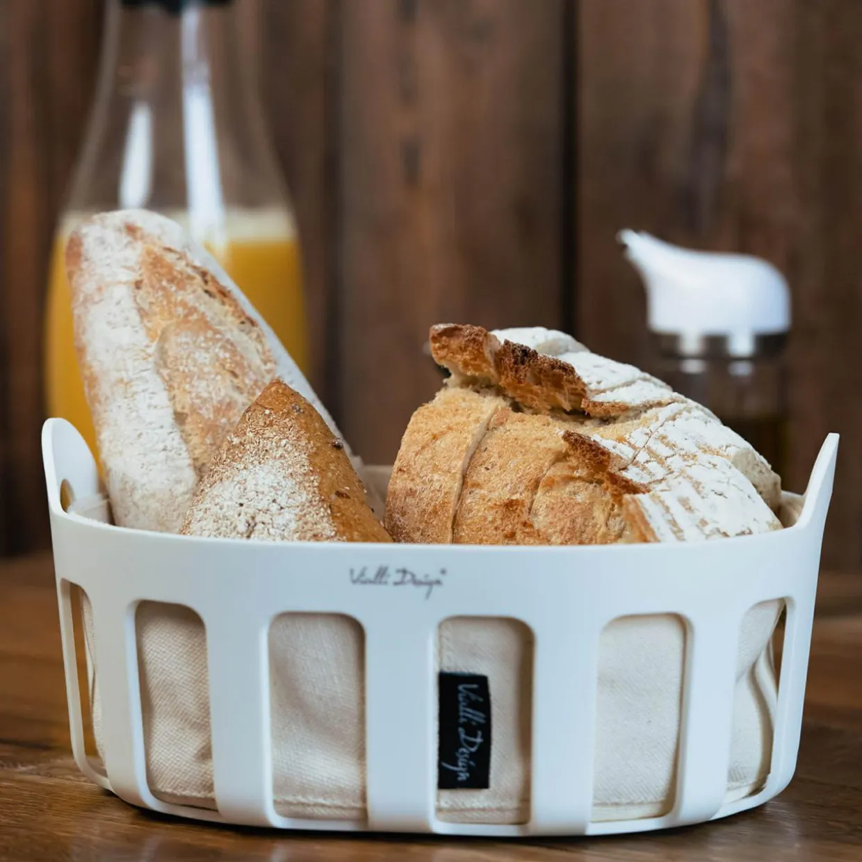 Koszyk na pieczywo z bawełnianym wkładem biały LIVIO
