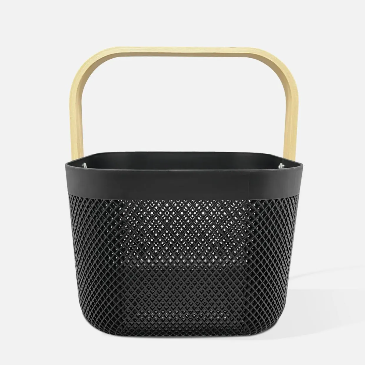 Koszyk z drewnianą rączką czarny 24x24x18 cm