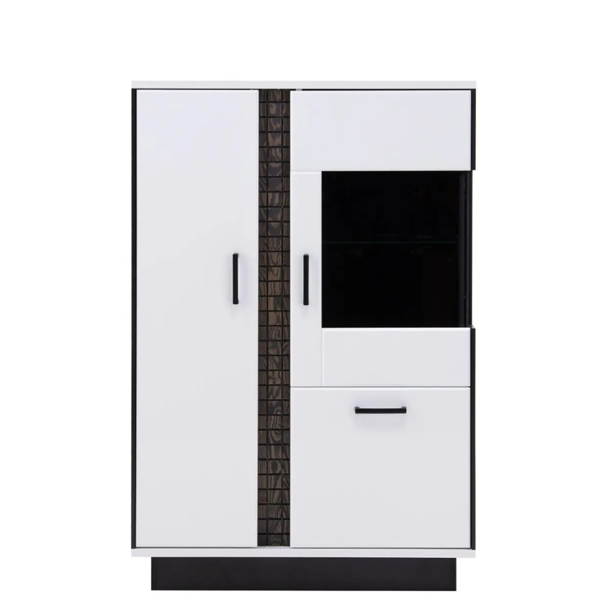 - Dwie wnęki za przeszkloną częścią drzwiczek pięknie wyeksponują dekoracje i pamiątki. Szklana półka jest wykonana z bezbarwnego szkła typu float o grubości 6 mm;