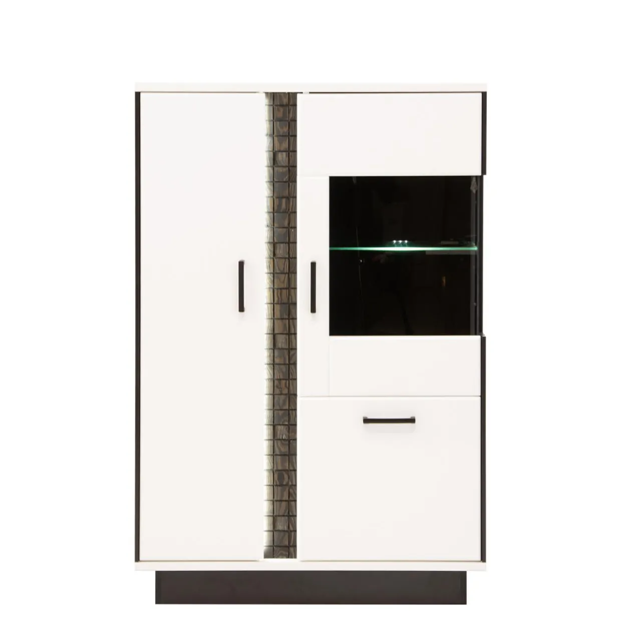 - Dodatkowo można dokupić oświetlenie LED, które podświetli szklaną półkę kredensu;
