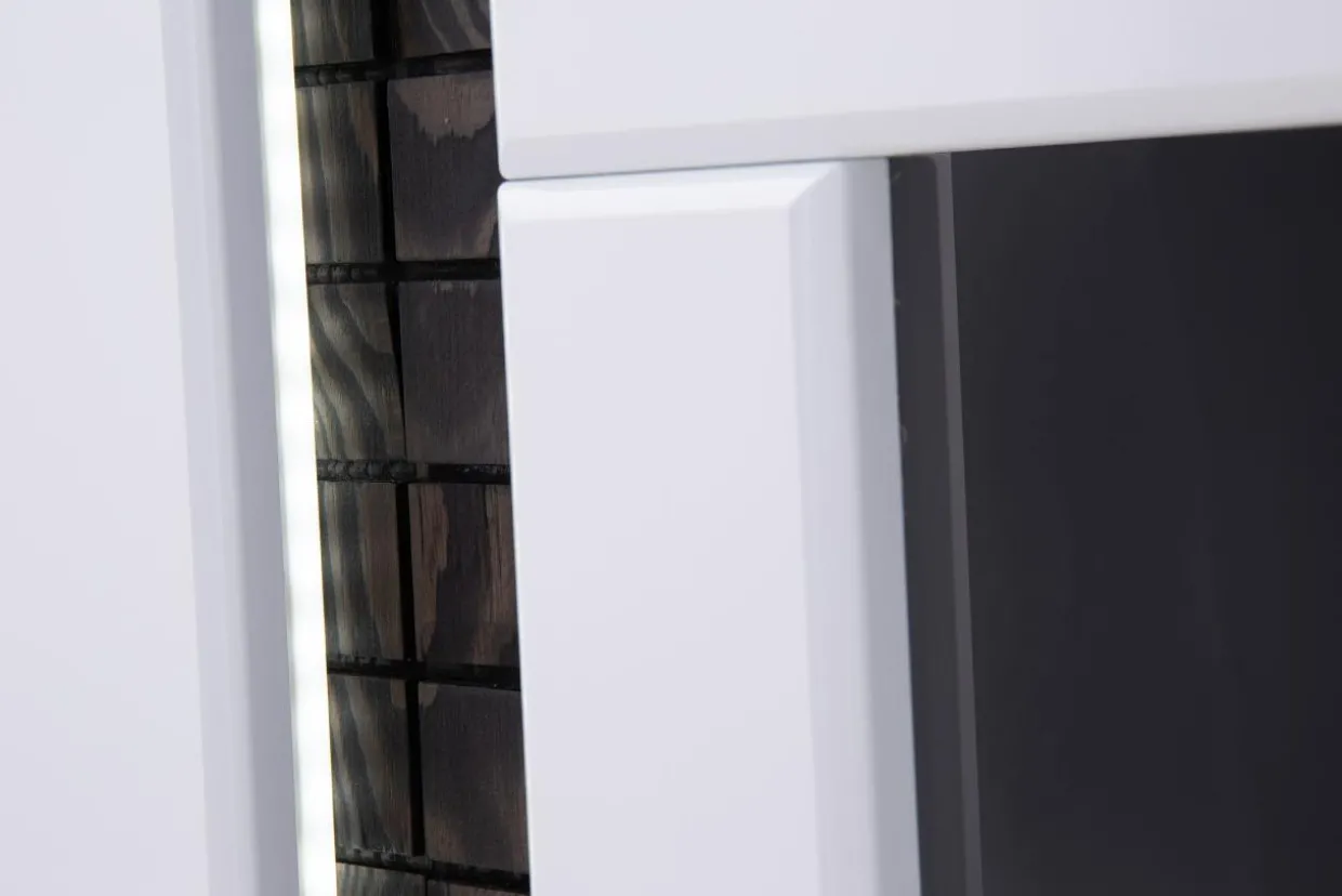 - W standardzie mebla jest oświetlenie LED o zimnej, białej barwie, która podkreśli elegancki charakter pomieszczenia. Punkty oświetleniowe pięknie podkreślają dekor na drzwiczkach kredensu. Klasa energetyczna oświetlenia to A++;