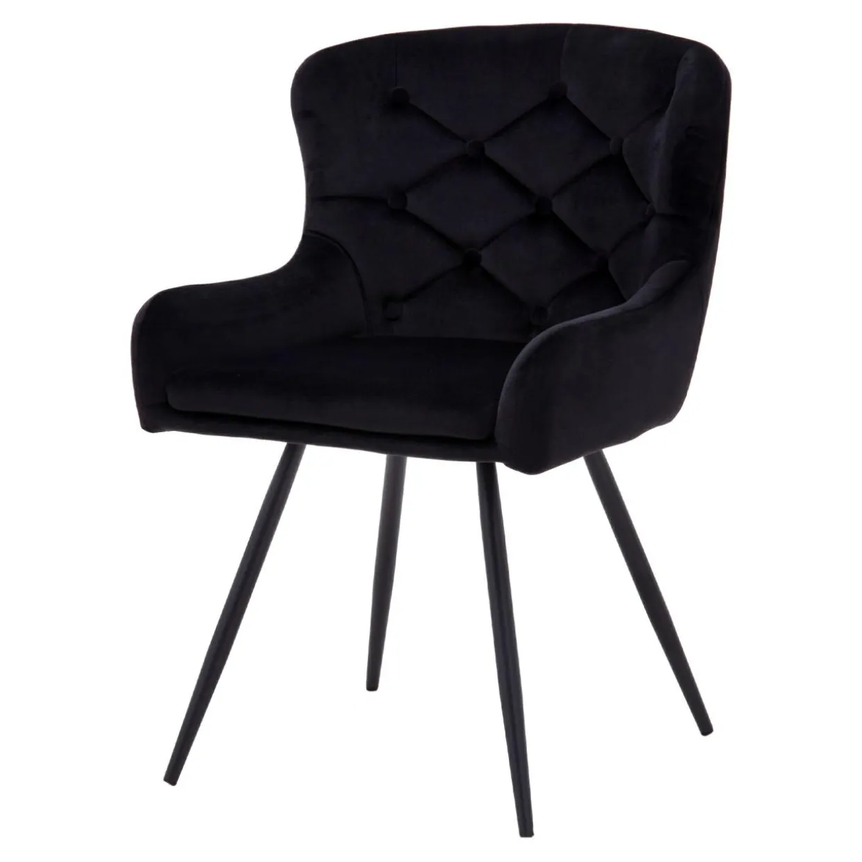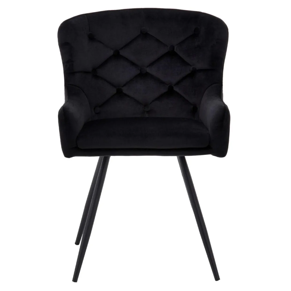 Klasyczne, obite elegancką welurową tkaniną siedzisko, zostało osadzone na współczesnych, czarnych metalowych nóżkach. Całości dopełnia stylowe, pikowane oparcie. Takiego typu mebel będzie świetnie pasował do nowoczesnych wnętrz, dodając im odrobinę klimatu retro.