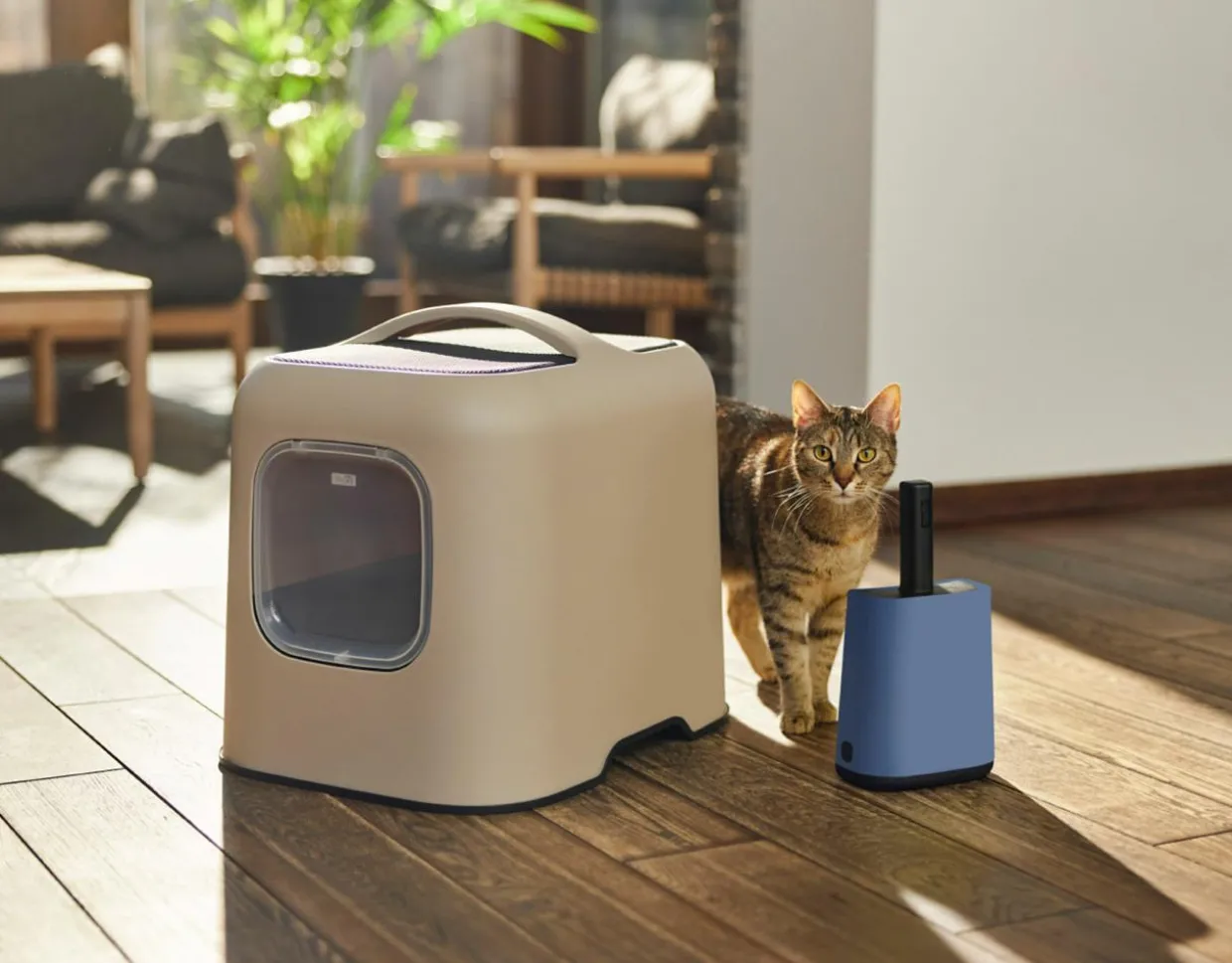 Kuweta wysoka dla kota beżowo-szara 51 cm