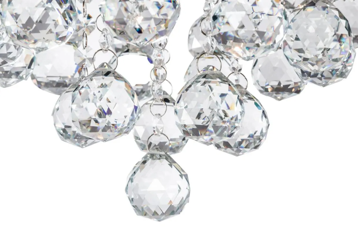 Lampa doskonale prezentuje się w pomieszczeniach zaaranżowanych w jasnej tonacji kolorystycznej oraz doskonale współgra ze szklanymi i chromowanymi meblami i dodatkami dekoracyjnymi. Dzięki oryginalnemu wykończeniu przyciąga wzrok, zapalona rozjaśnia pomieszczenie oraz uatrakcyjnia jego wygląd tworząc na ścianach świetlne refleksy.
