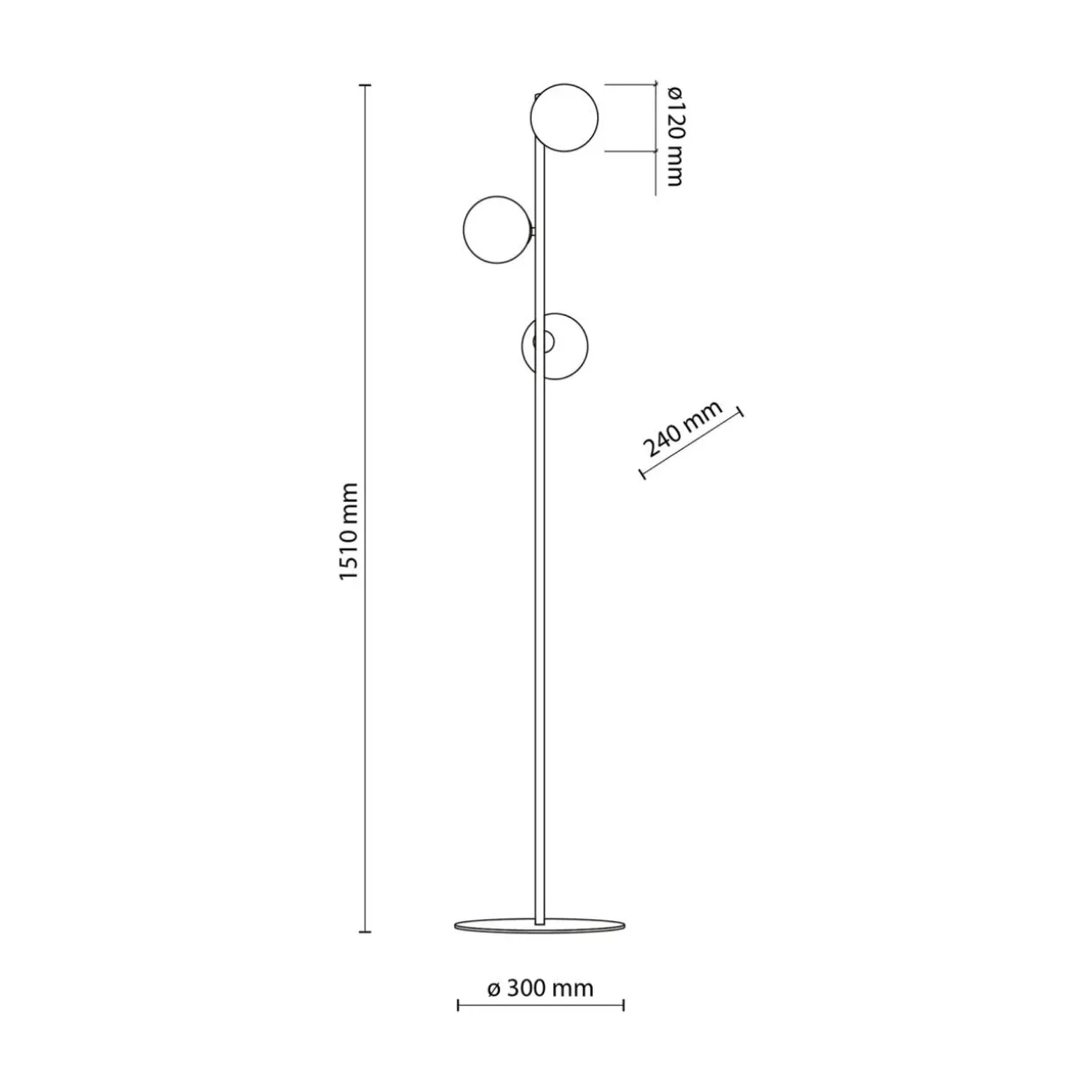 - 3 klosze są zawieszone w regularnych odstępach i połączone z podstawą.