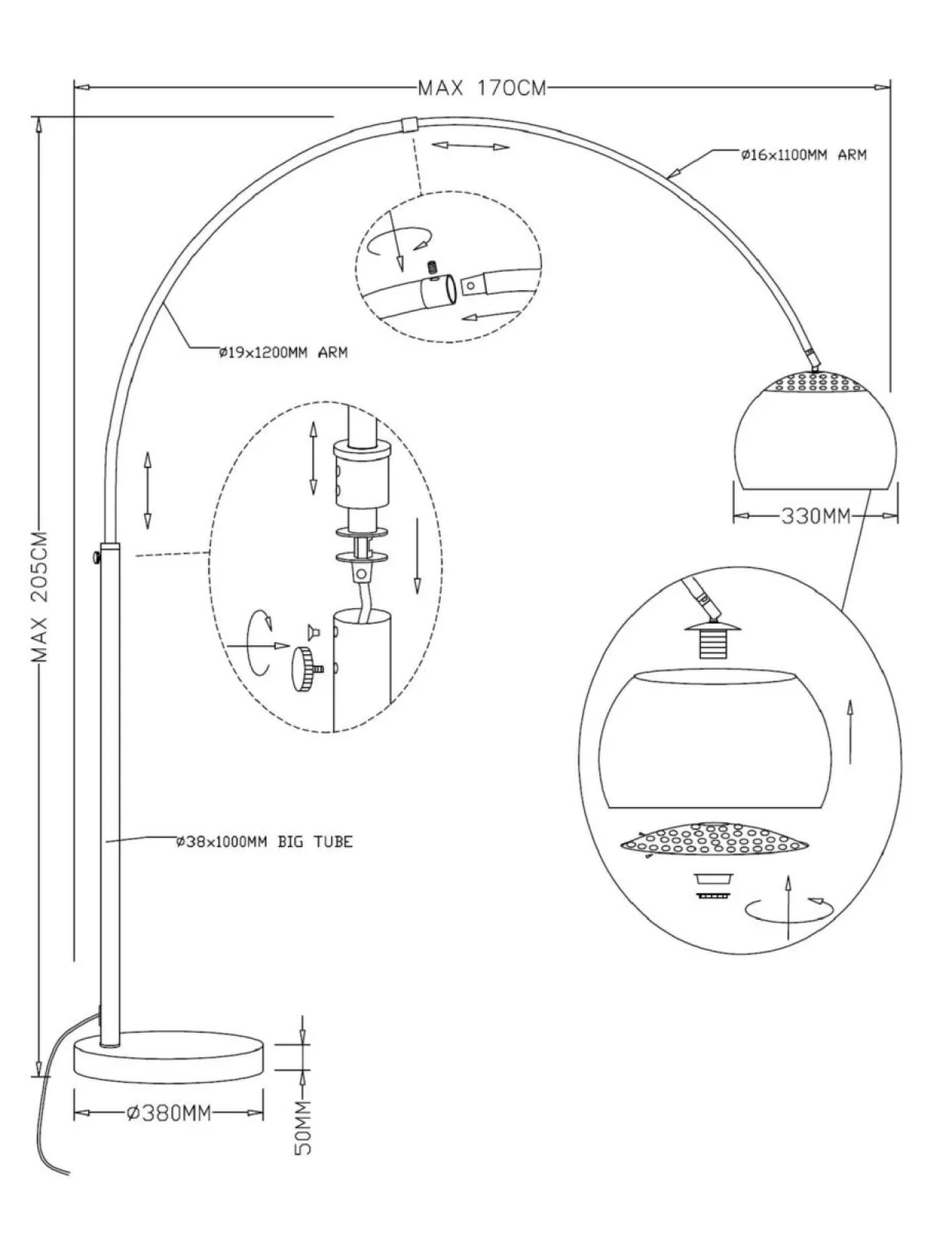 Posiada oprawę przeznaczoną dla pojedynczej żarówki typu E27 o mocy maksymalnej 60W.