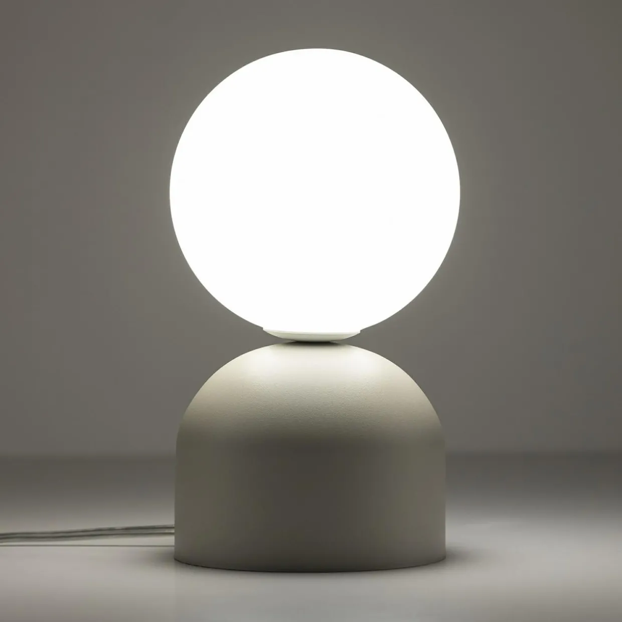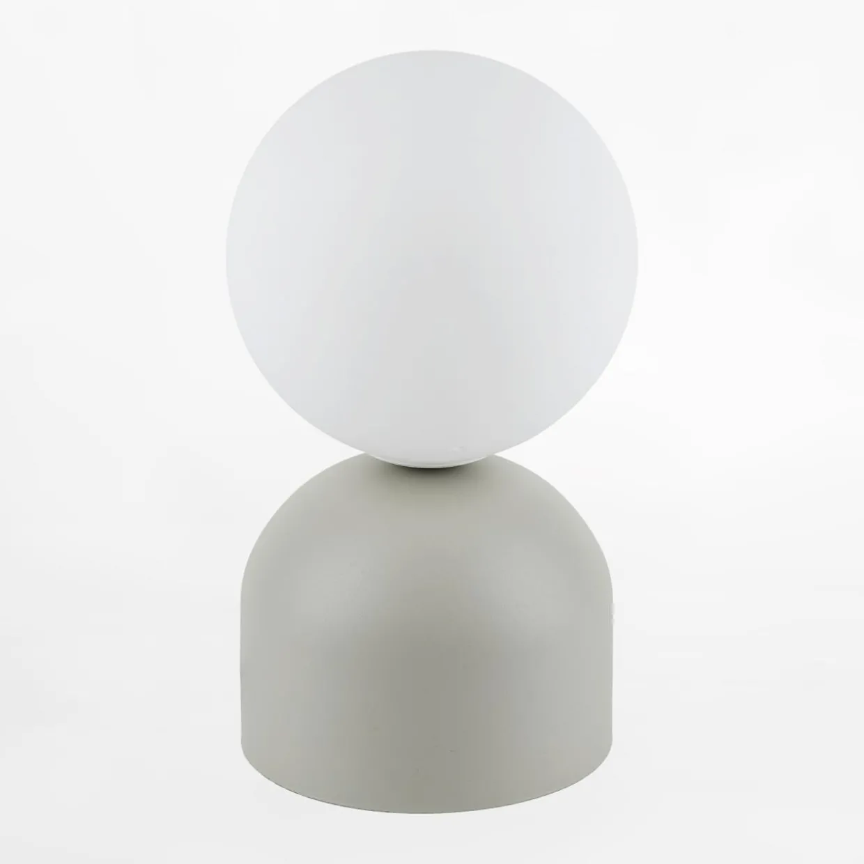 - Lampka została wykonana ze stali lakierowanej oraz tworzywa sztucznego. Podstawa jest matowa, a klosz szklany.