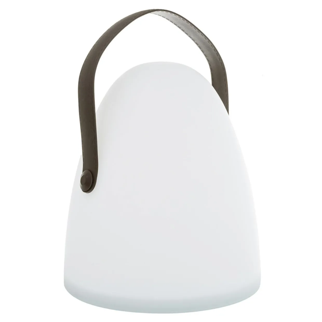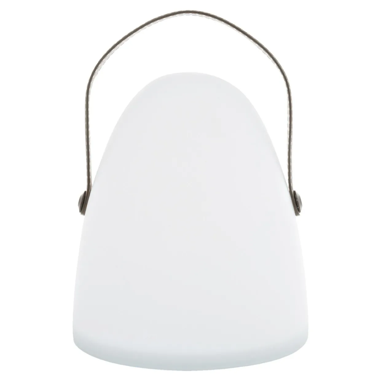 Kształt lampy LUKA jest owalny ze ściętą płasko, stabilną podstawą.