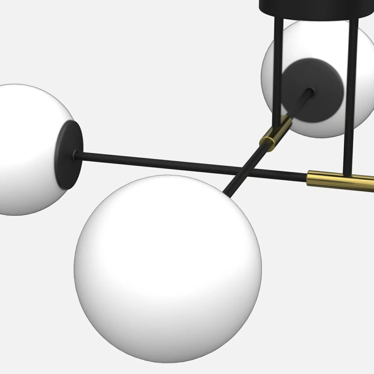 GLAME to rodzina lamp z kulistymi kloszami na prostych ramiona w odcieniach czerni i złota. Wybierz kinkiet lub jeden z modeli sufitowych i dopełnij aranżacji salonu.