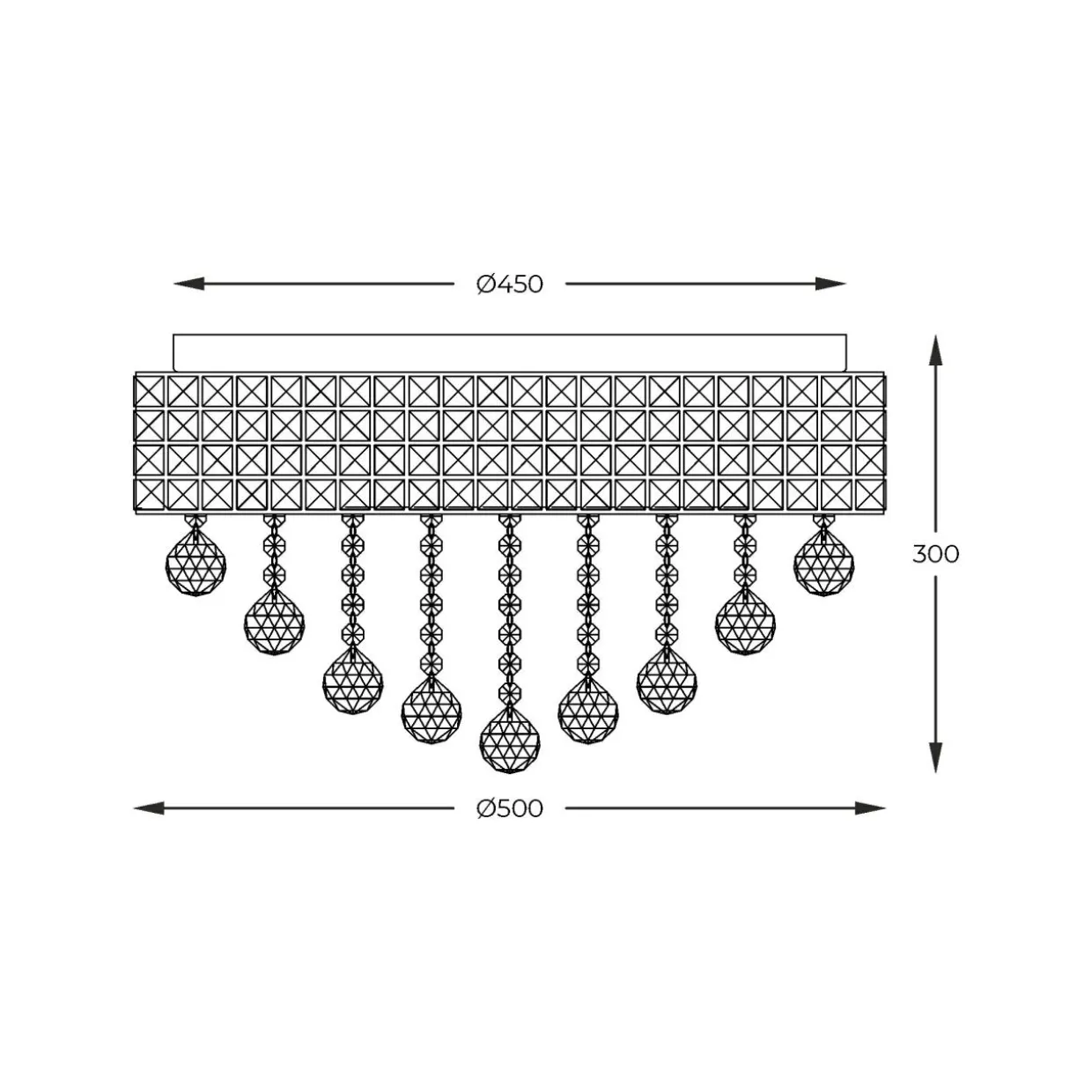 Średnica równa 50 cm sprawia, że lampę CAPRI najlepiej umieścić jako główne oświetlenie dla salonu, jadalni lub pokoju dziennego. Nawet zgaszona jest doskonałym dopełnieniem wnętrza, dodając mu tonacji kojarzonej ze stylem glamour.
