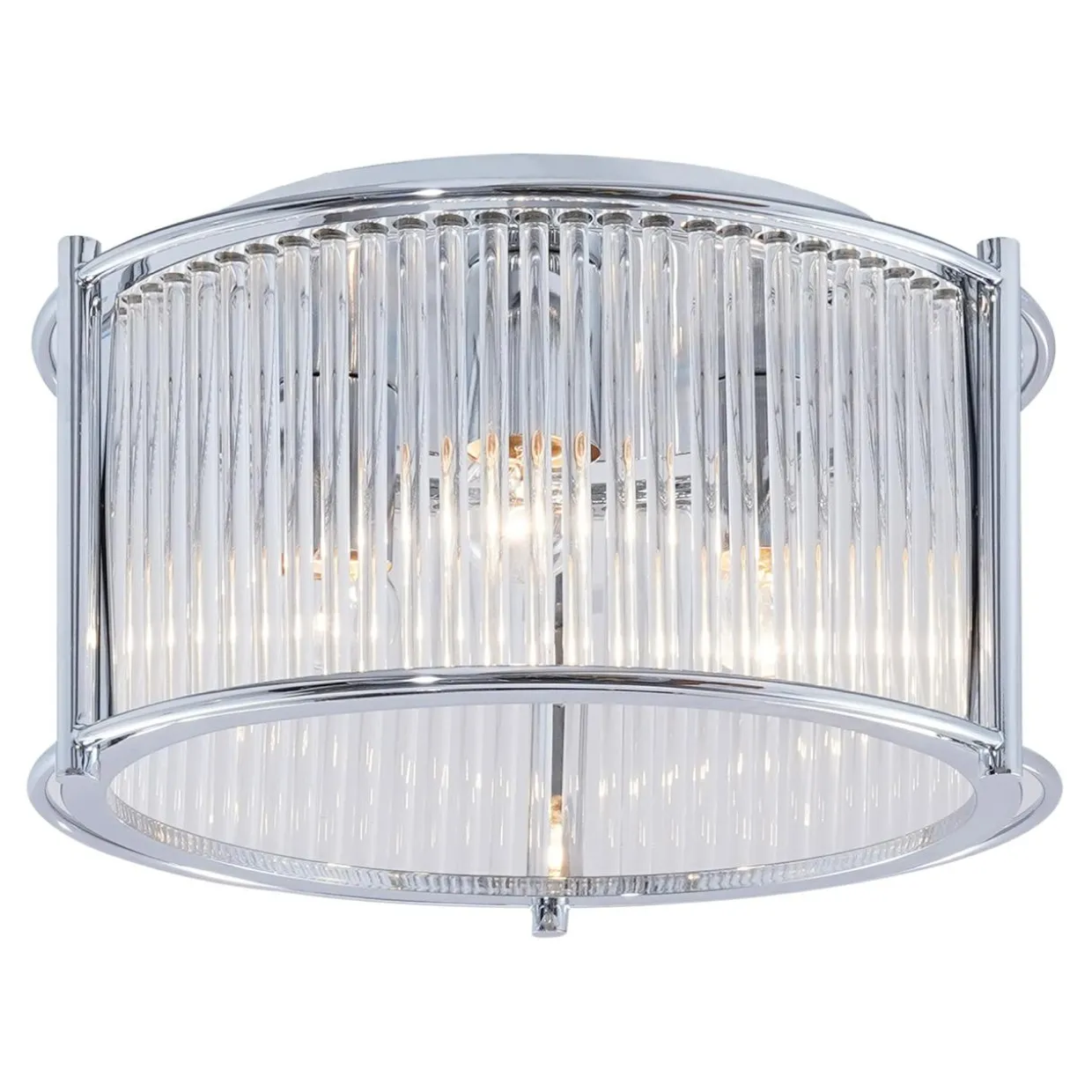Jej klosz wkomponowany w metalową ramę został wzbogacony chromowanym wykończeniem. Wspaniale komponuje się z przestronnymi wnętrzami oraz jasnymi kolorami mebli i tapicerki.