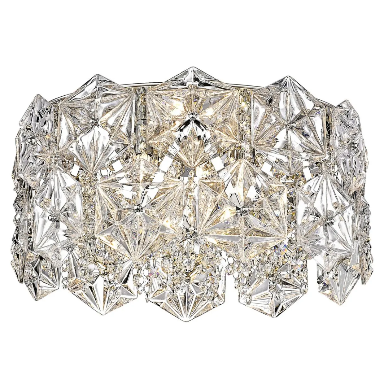 - DAVI posiada okazały klosz o średnicy 41 cm, złożony z nachodzących na siebie szklanych ozdób ściętych na podobieństwo kryształów.