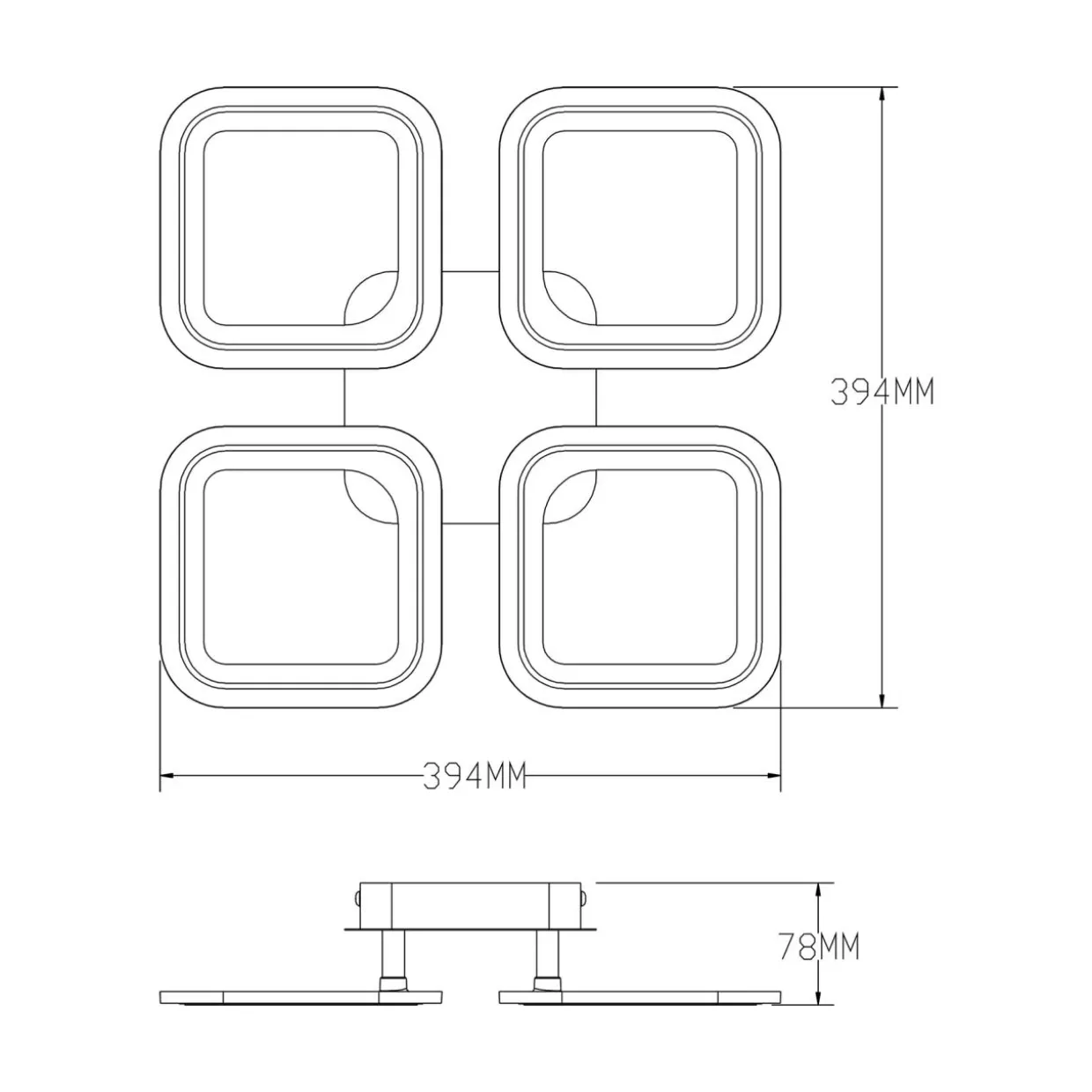Design lampy tworzy 4 przecinające się nawzajem figury. Każda z nich posiada chromowane wykończenie oraz wbudowany LED, który po zapaleniu światła podkreśla kształt lampy.