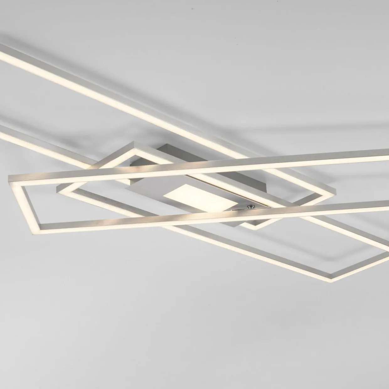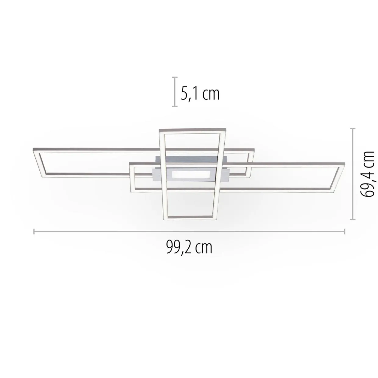 Zintegrowane z oświetleniem LED ramiona lampy można ustawić tak, by wizualnie jak najlepiej odpowiadał otoczeniu. Geometryczny design lampy, na który składają się dwie prostokątne ramki daje naprawdę wiele możliwości.